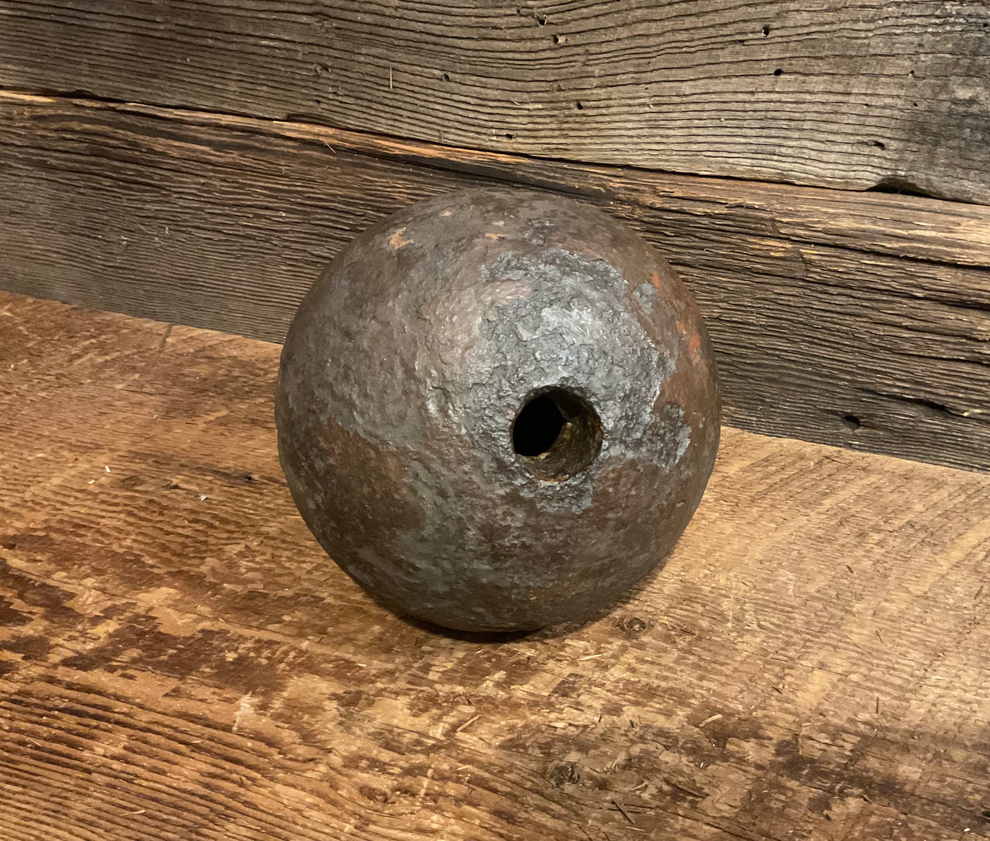 Smooth Bore Coehorn Mortar 24 Pounder 5.82” tapered hole for wooden plug and paper fuse. Totally empty inside the cavity (besides a wooden plug) and totally inert.