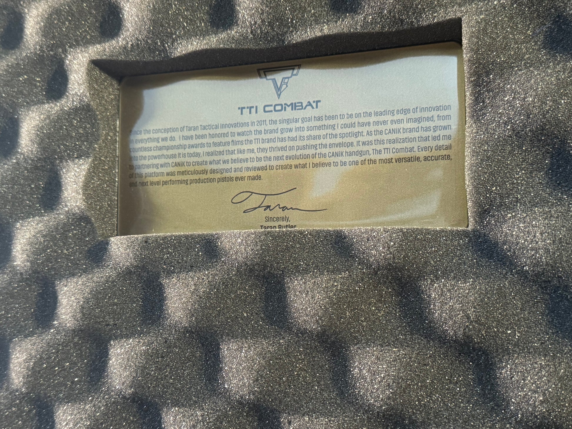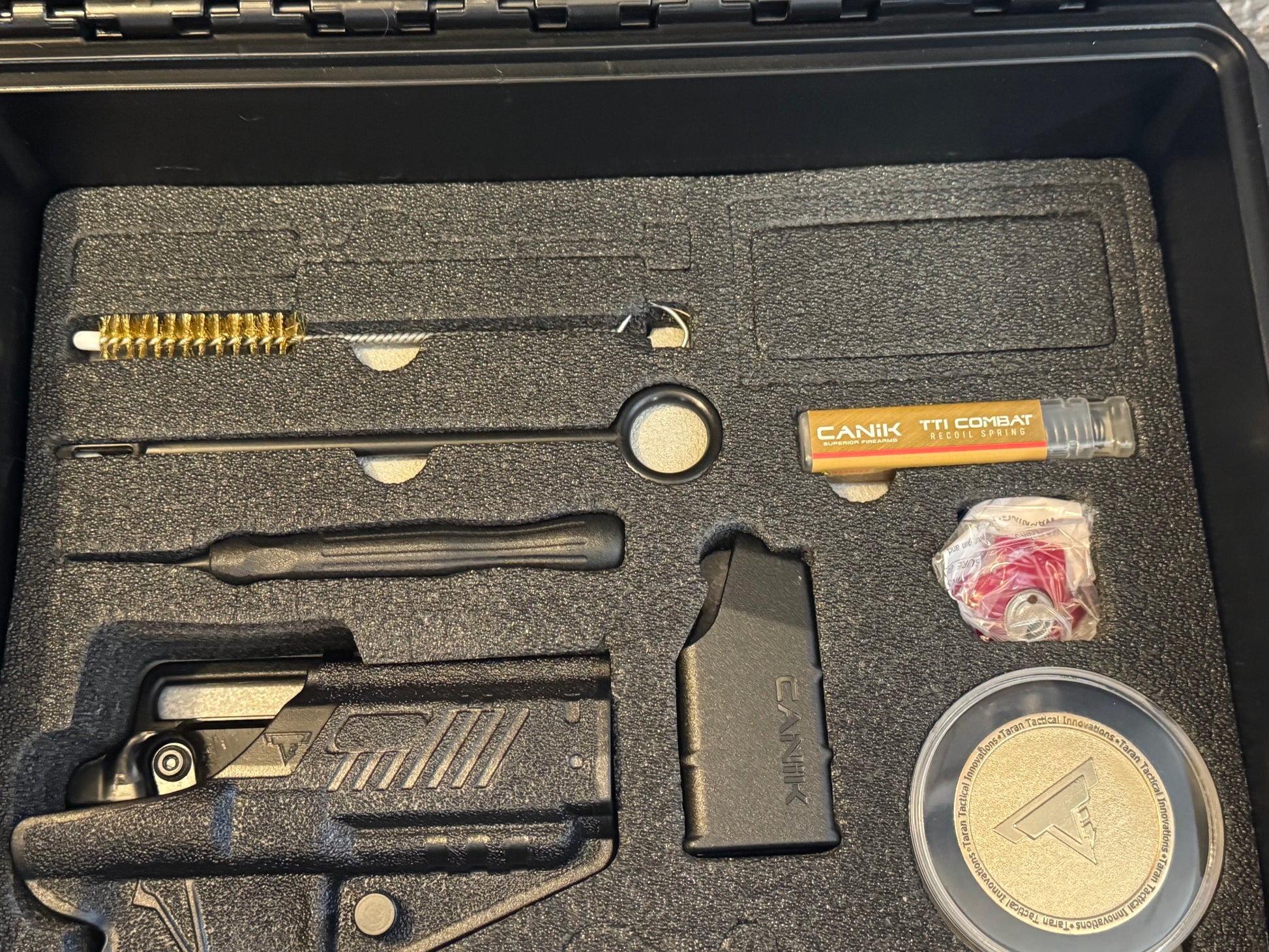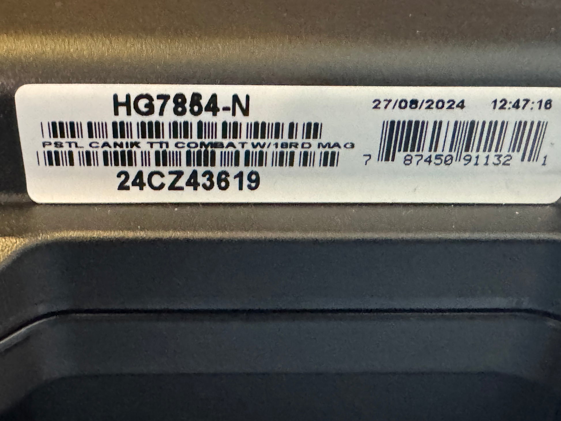This is a Canik TTI Combat 9mm pistol, a collaboration between Canik and Taran Tactical Innovations, designed for superior performance and competition-ready accuracy right out of the box. This example is in like new condition and comes complete in the factory hard case with all original accessories.