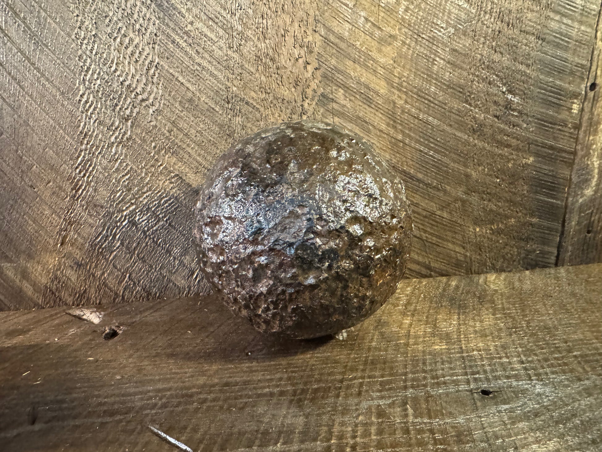 Authentic cast iron explosive shell from the American Civil War era. This 12-pounder projectile was designed to be filled with black powder and fitted with a fuse, making it far deadlier than a solid cannonball. Fired from smoothbore cannons like the famous Napoleon 12-pounder, shells like this were used in major battles from 1861–1865.