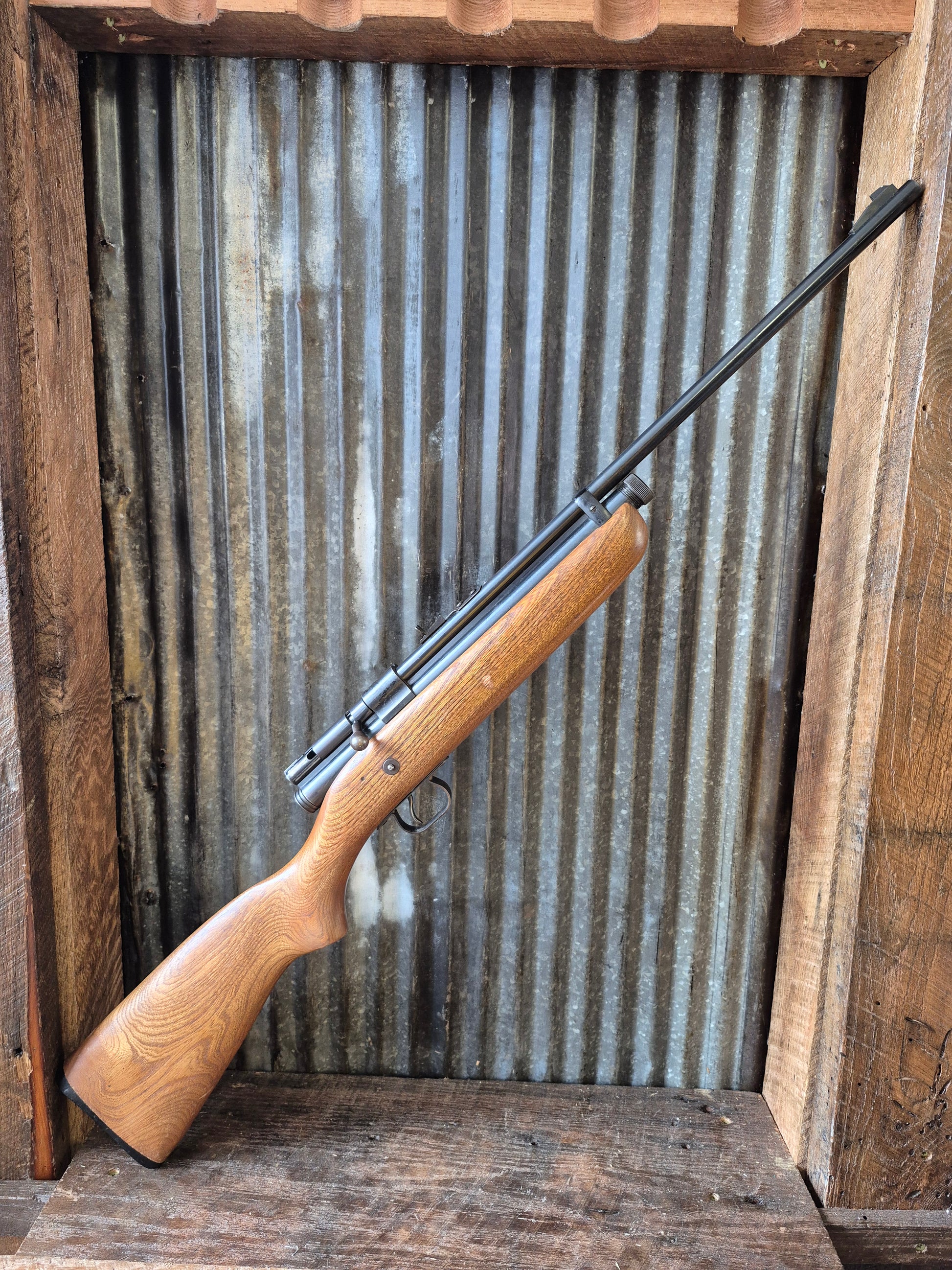 Amazing shape for it's age! Well taken care of C02 powered .22 caliber air rifle. All parts present and accounted for and a beautiful stock!
