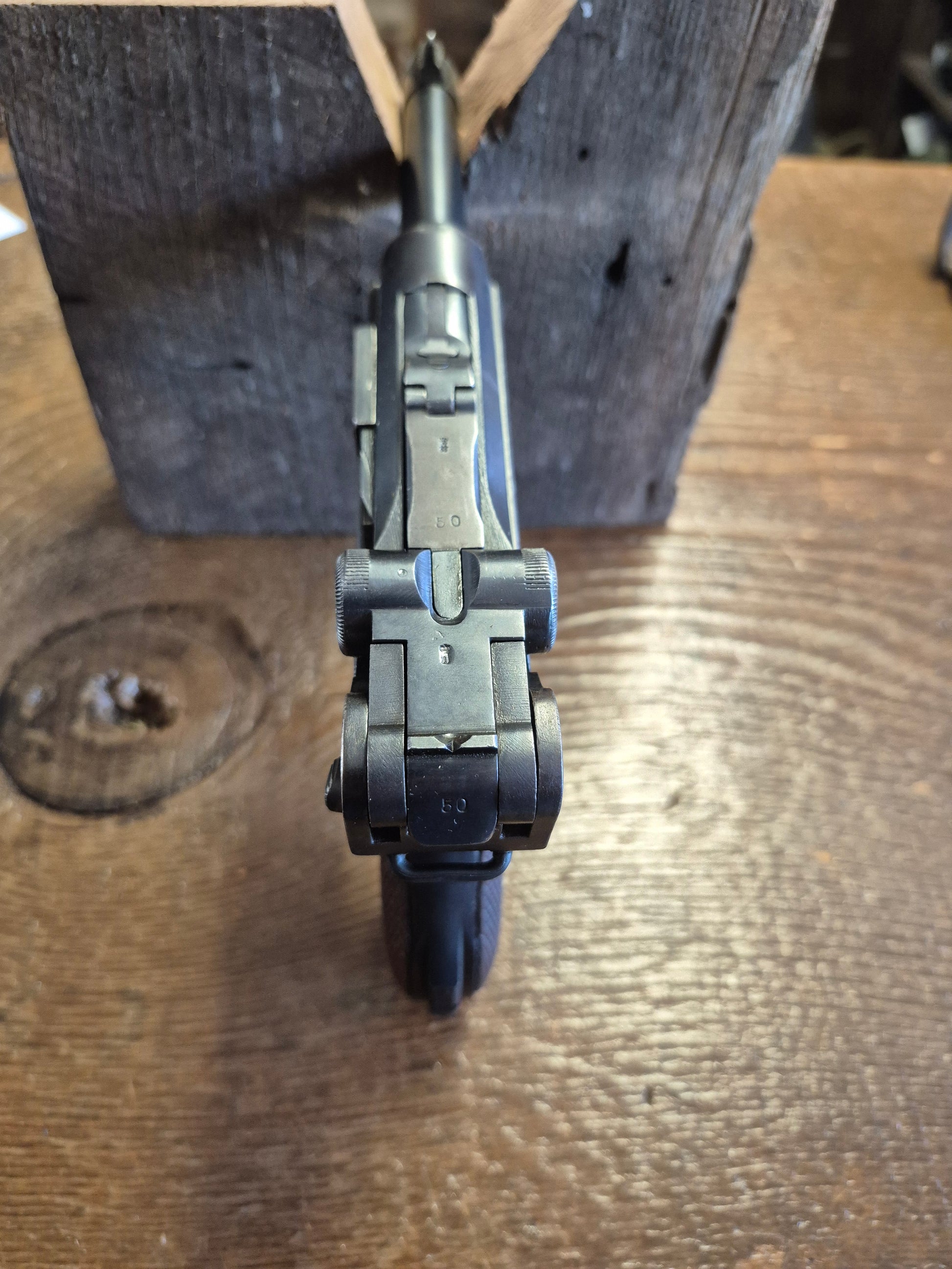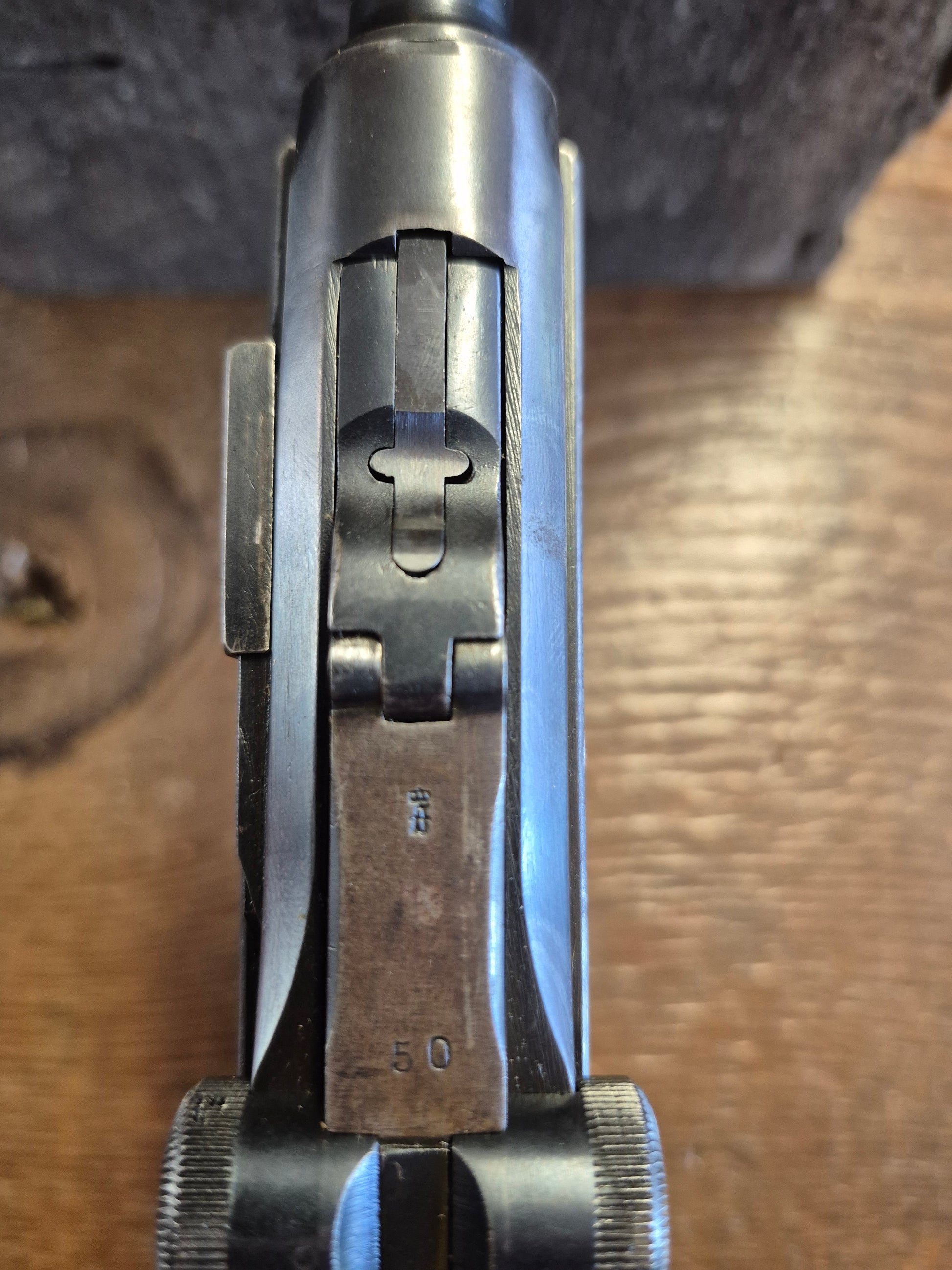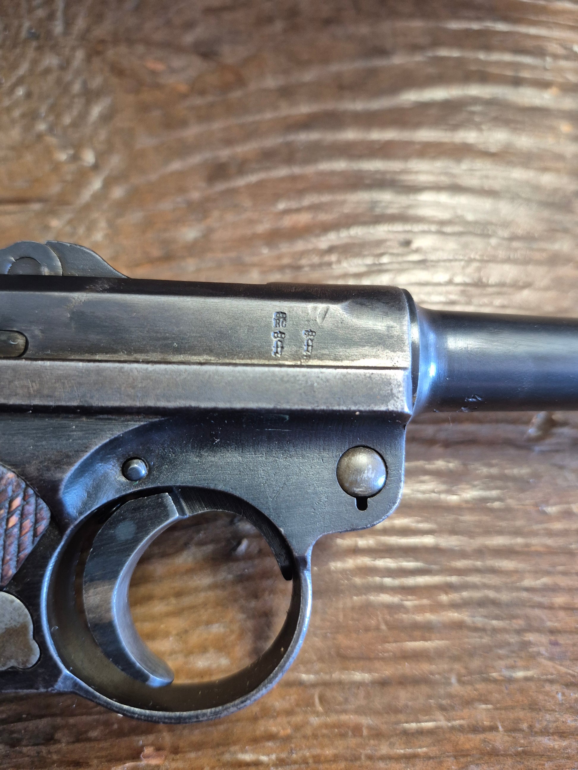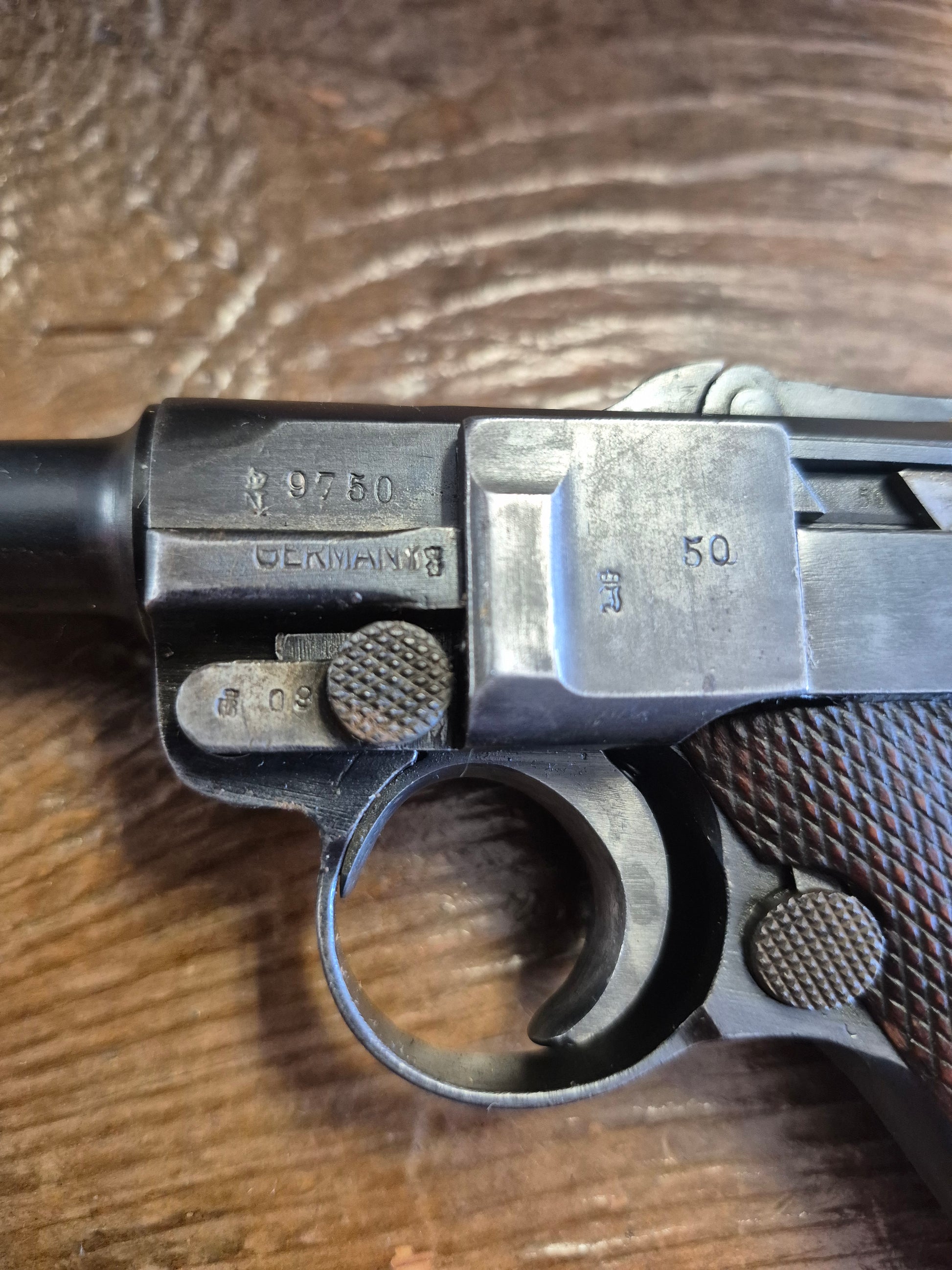 Excellent condition Erfurt P-08 7.65x21 German Luger. Believed to be a police rework pistol. There is no date stamp or makers emblem present. The barrel and the takedown lever are not the same # as the rest of the gun. The magazine is number matching to the receiver.