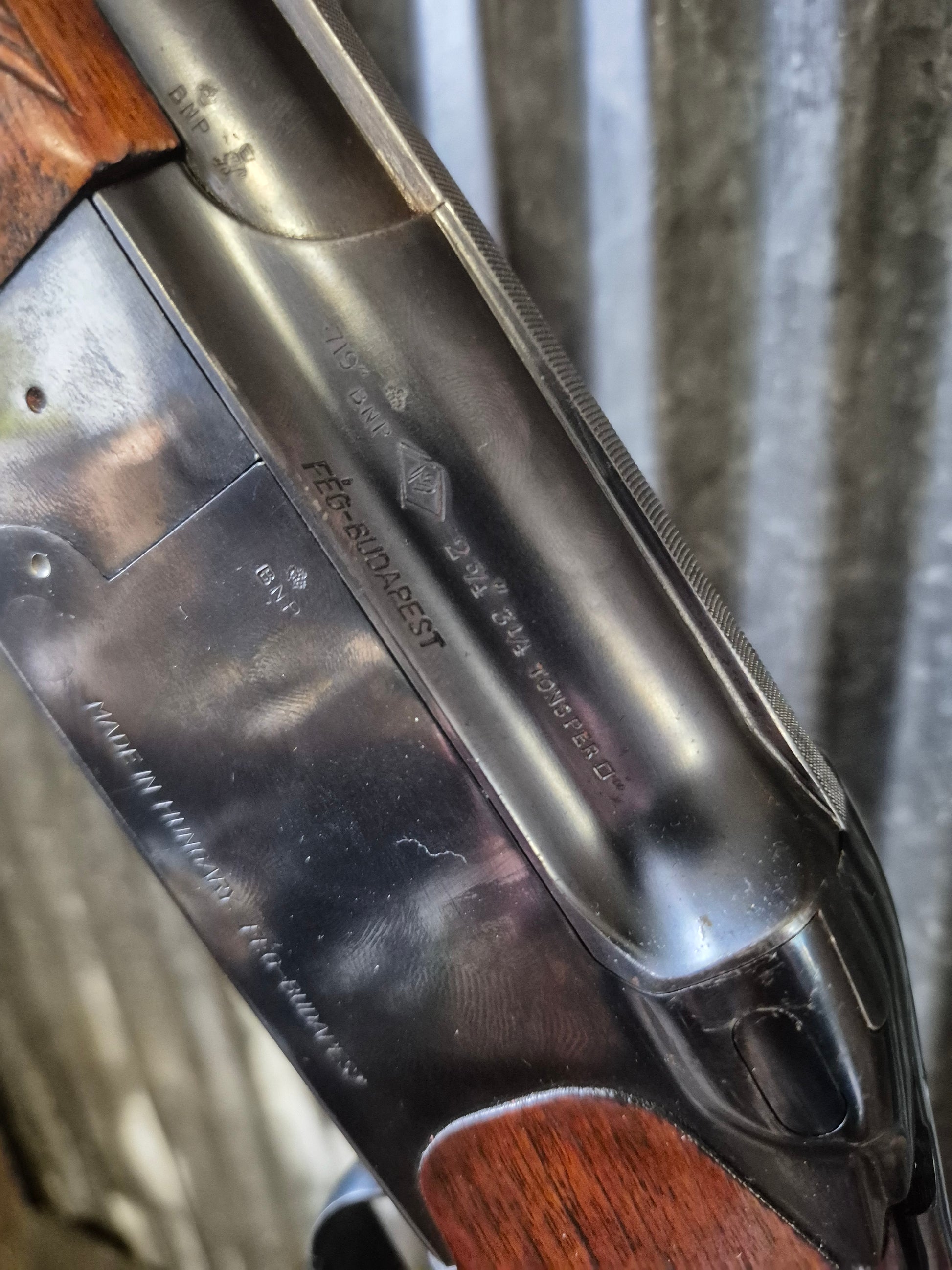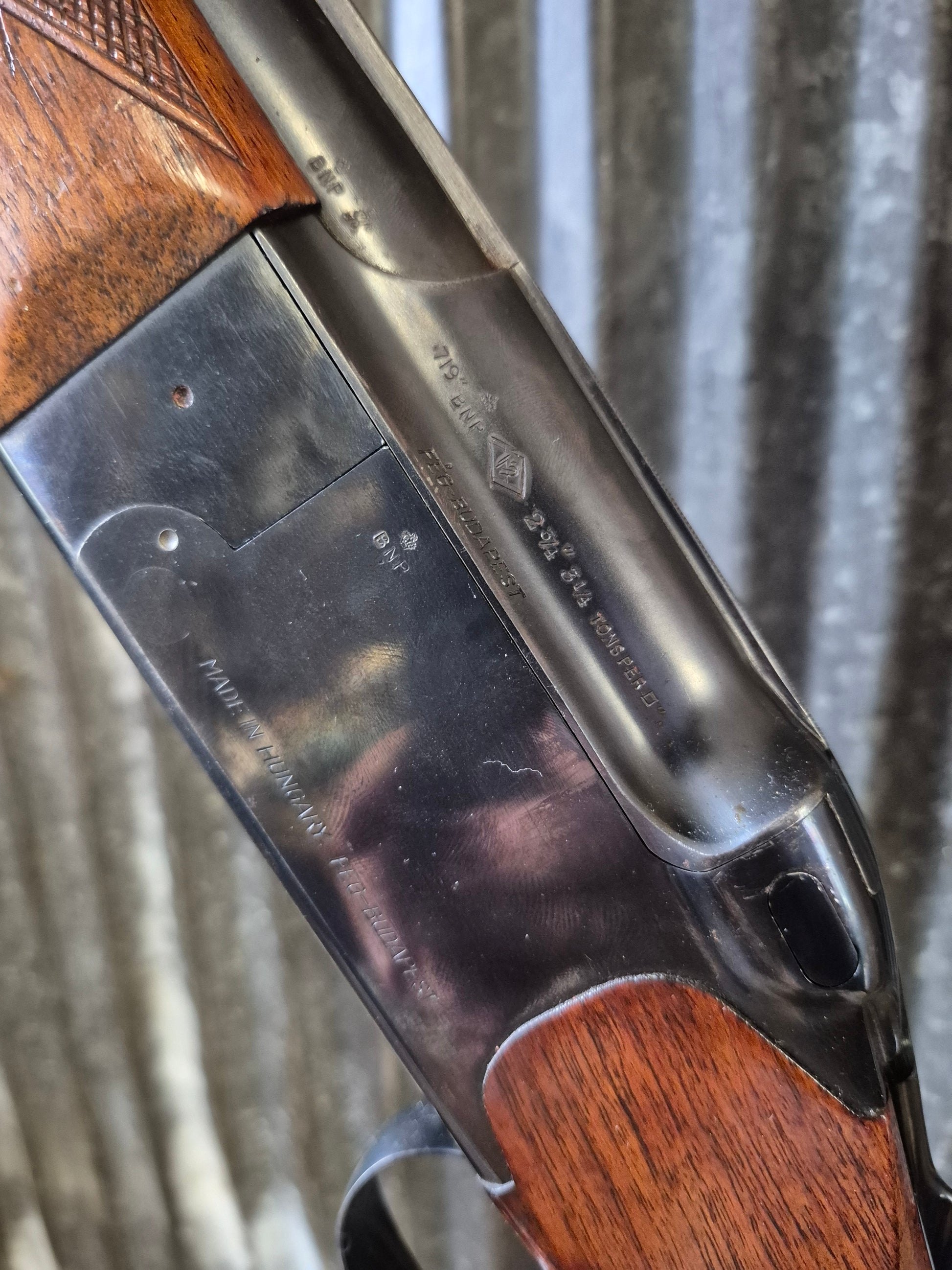 Hungary manufactured FEG 12ga 2 3/4" chambers with the top barrel at full choke and the under barrel being modified. Barrels are 28" in length. Stock was cut at one time as seen in the pictures. Excellent hunting condition O/U 12ga!