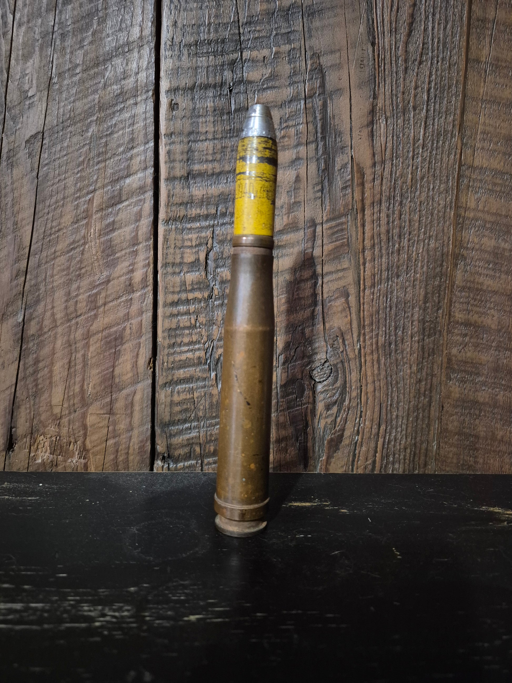 Excellent condition, hard to find 2cm German PaK anti-aircraft High Explosive round dated 1940 on the projectile and the case. The fuze is dated 1941.