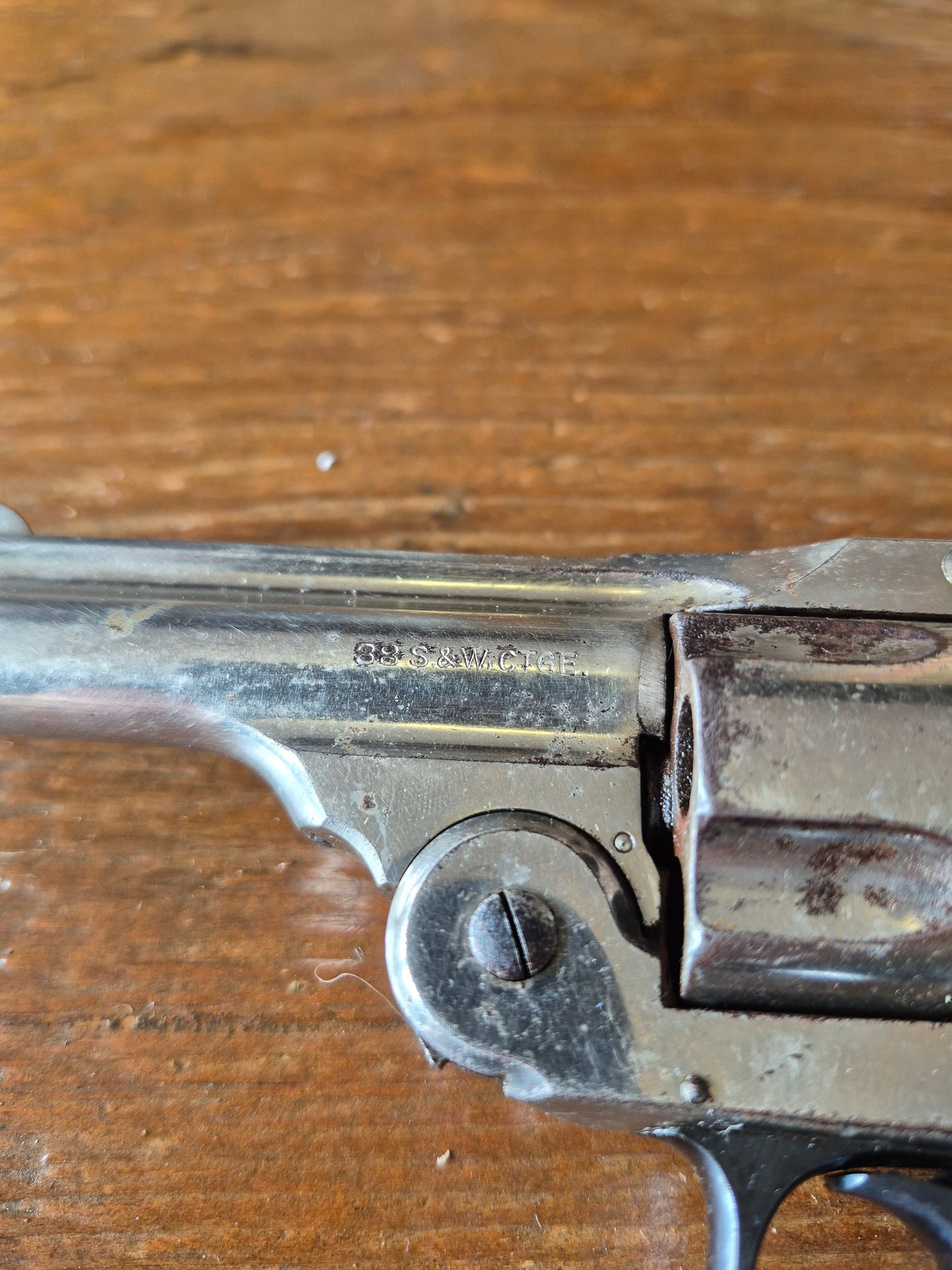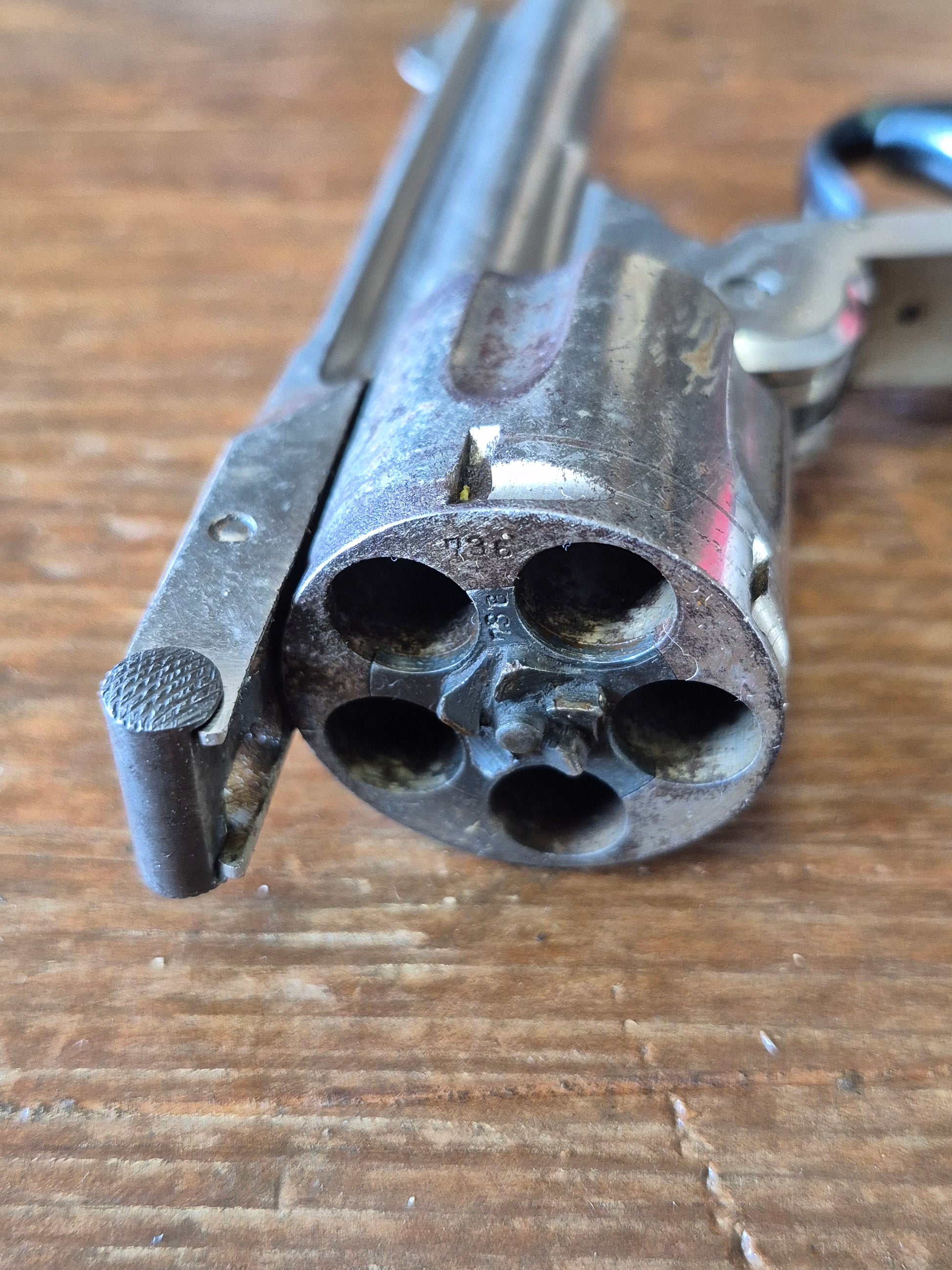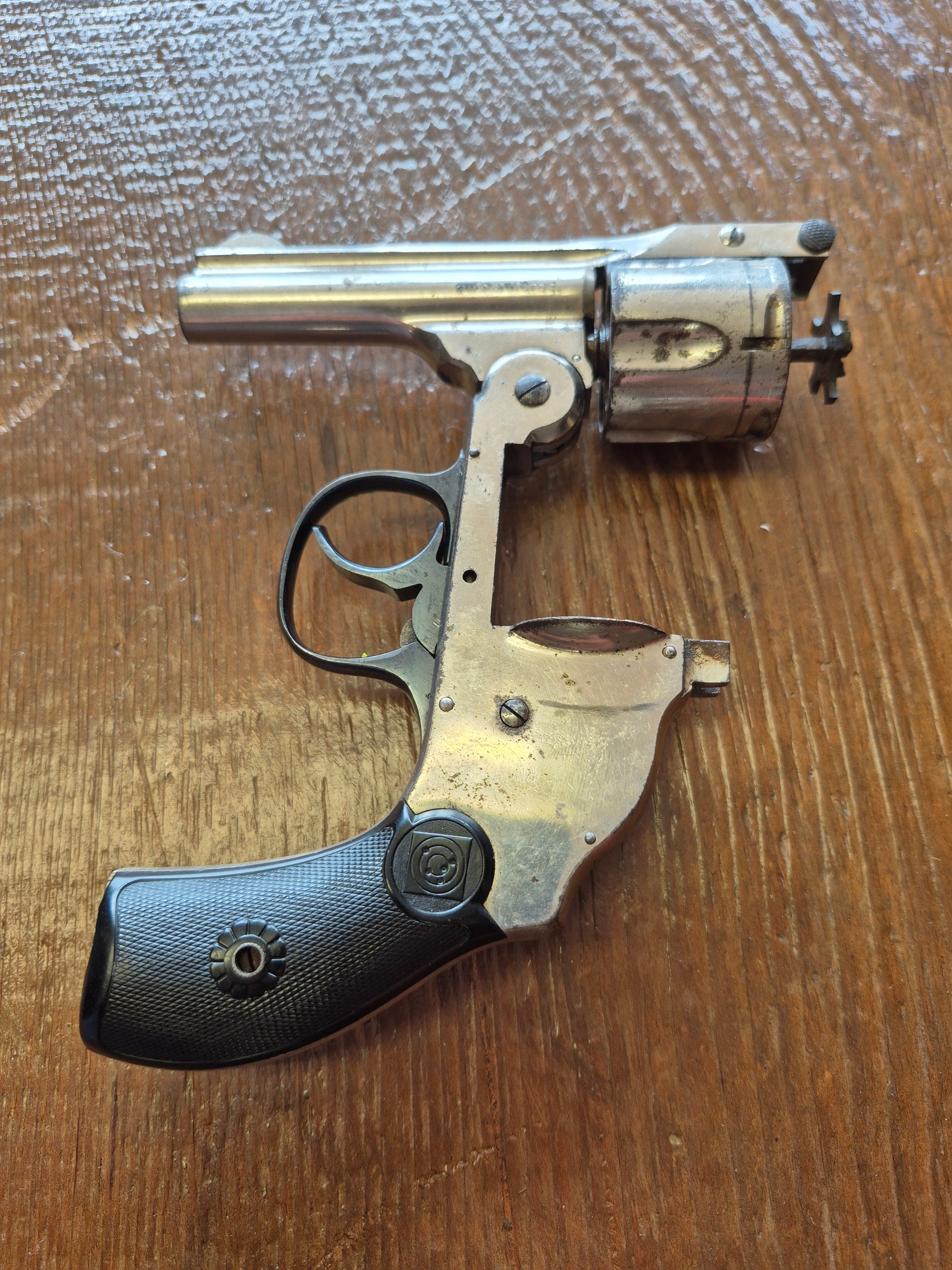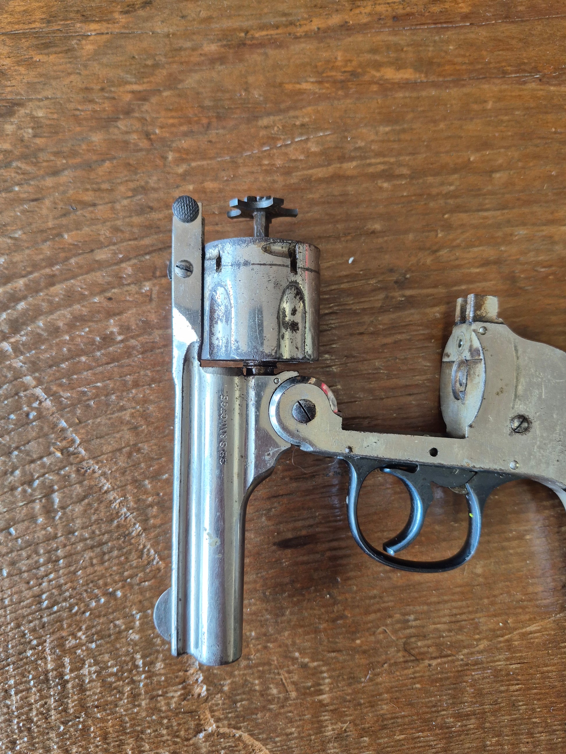 Very nice condition H&R 32 s&w top break hammerless revolver. Good nickle finish and functions as it should.