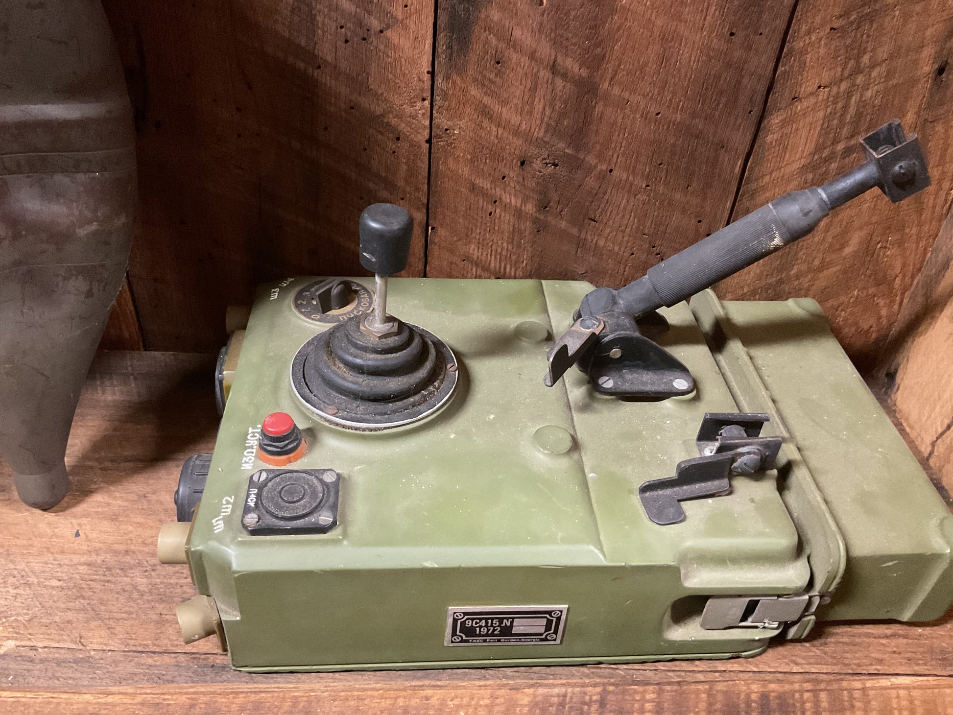 Vietnam era, Soviet 9M14 (AT-3 Sagger) wire guided anti-tank missile with the control box dated 1972 and the aluminum rail with bubble level.