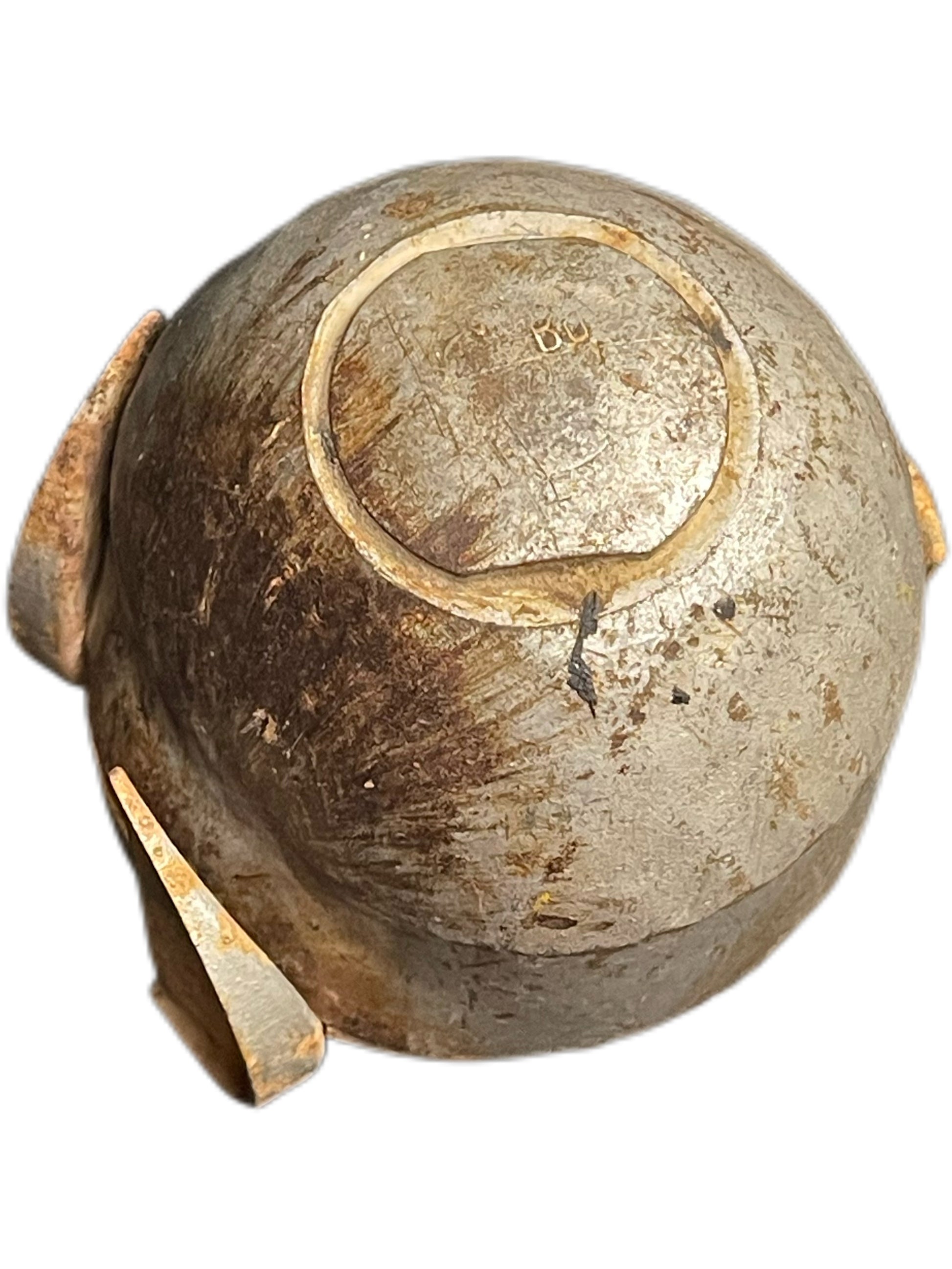 This particular AO-2.5RT is fully inert and has been deactivated, making it safe for display or study. It shows authentic signs of age and exposure, with visible rust and corrosion that tell the story of its journey through history. Markings such as “60” (possibly indicating a batch number or year of manufacture) are visible, adding to its historical intrigue. The internal grid-like pattern, visible in the photos, highlights its fragmentation design, a hallmark of Soviet submunition engineering.