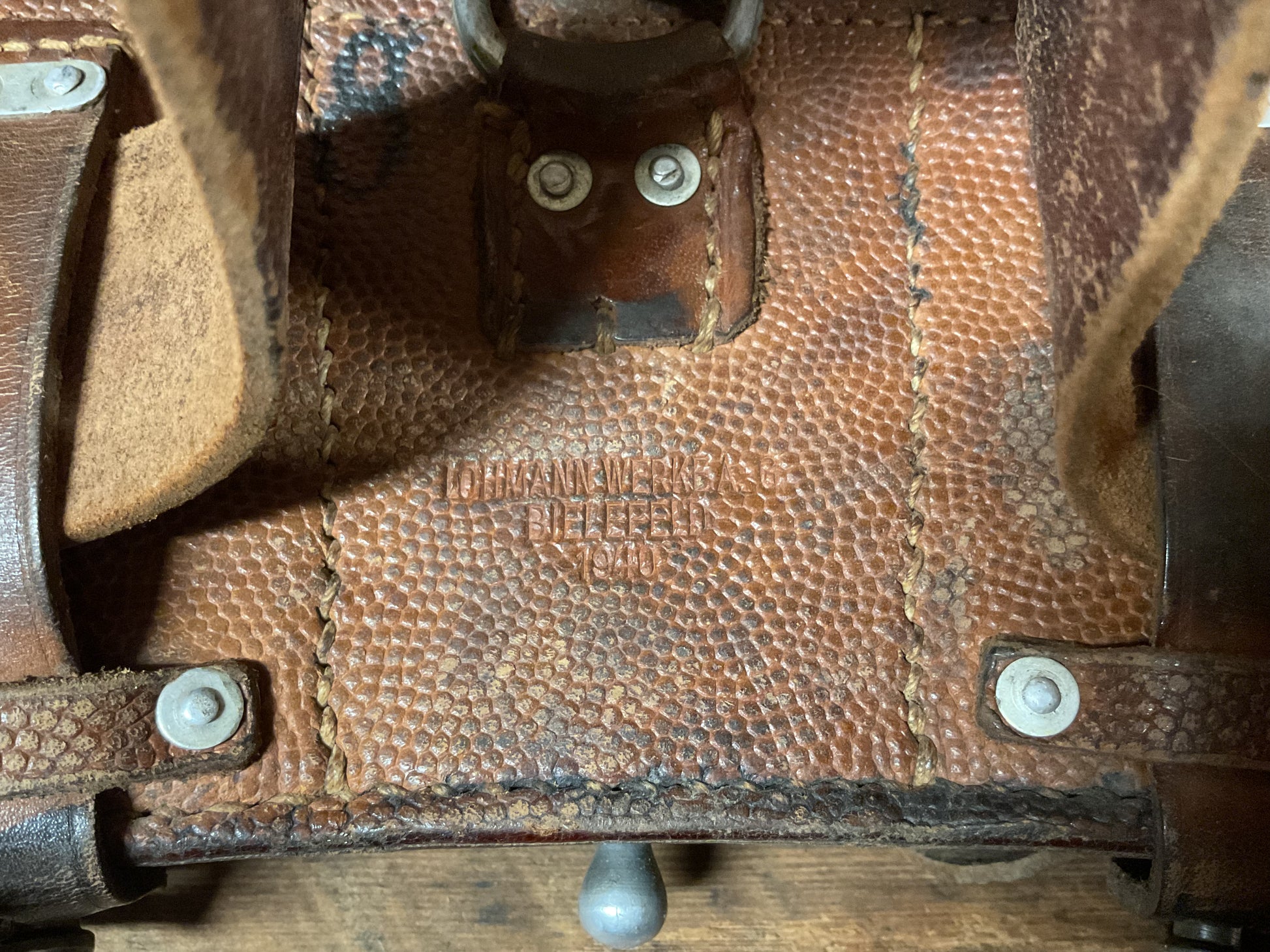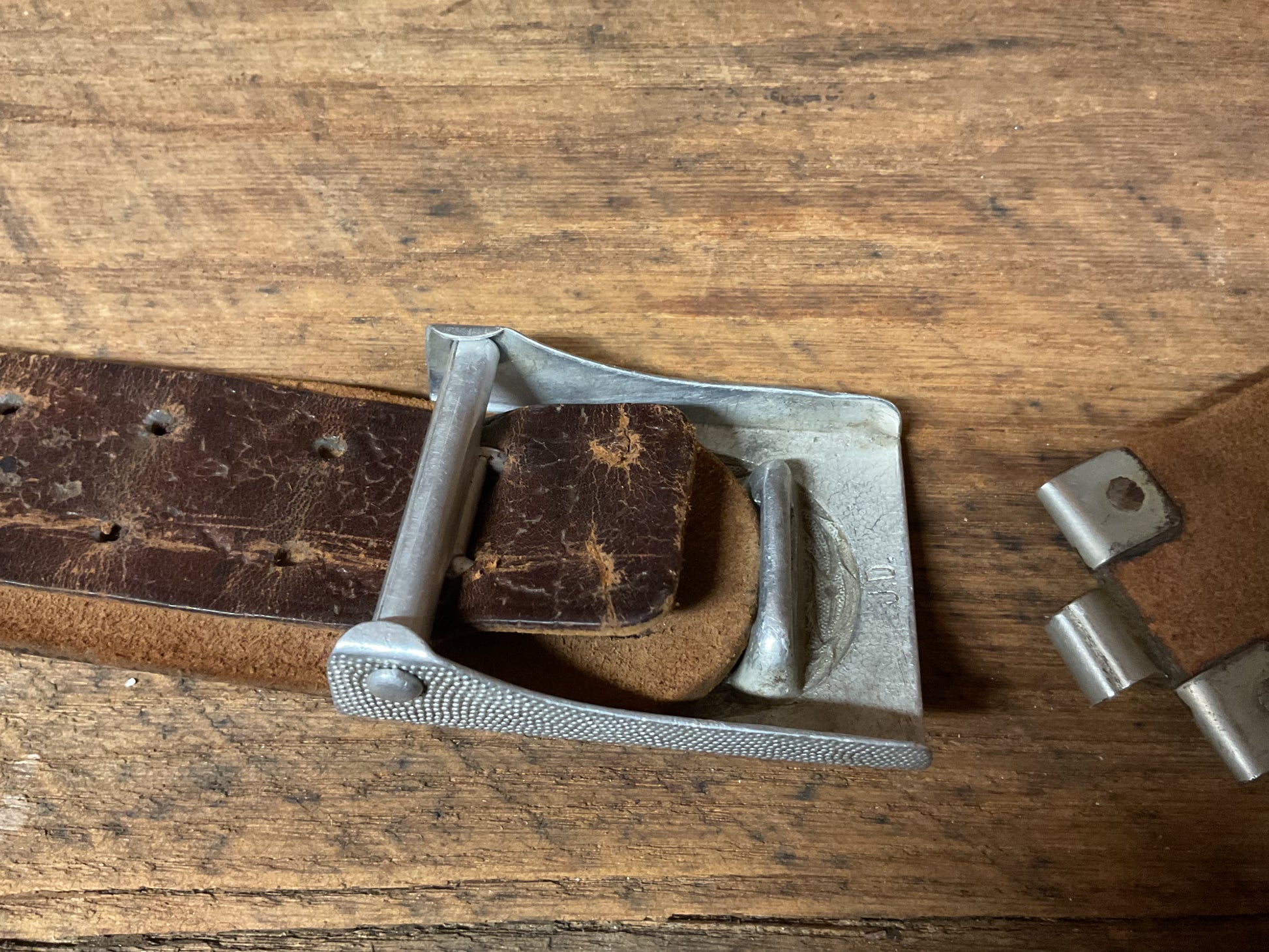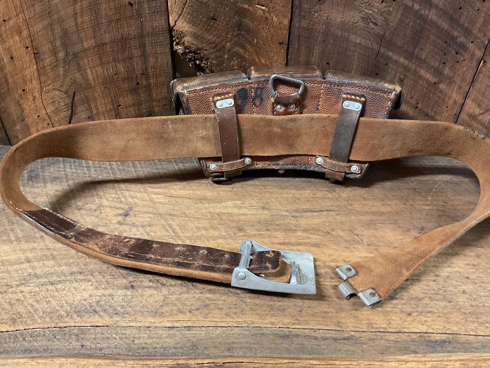 Excellent condition 1940 pattern Johannes Deutschbein Luftwaffe belt buckle with an unmarked brown leather belt and brown pigskin Lohmann Werke A.G. Bielefeld 1940 dated K98 ammo pouch.
