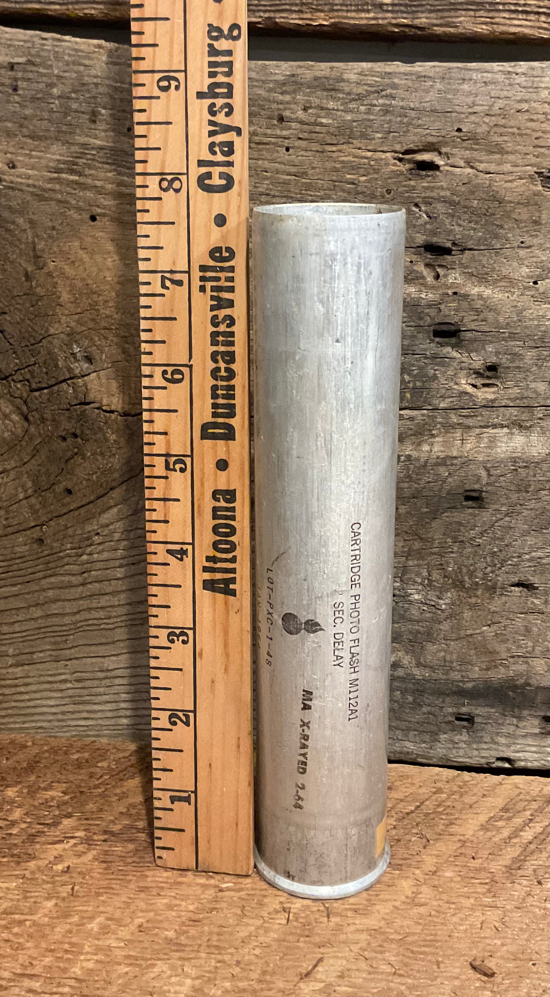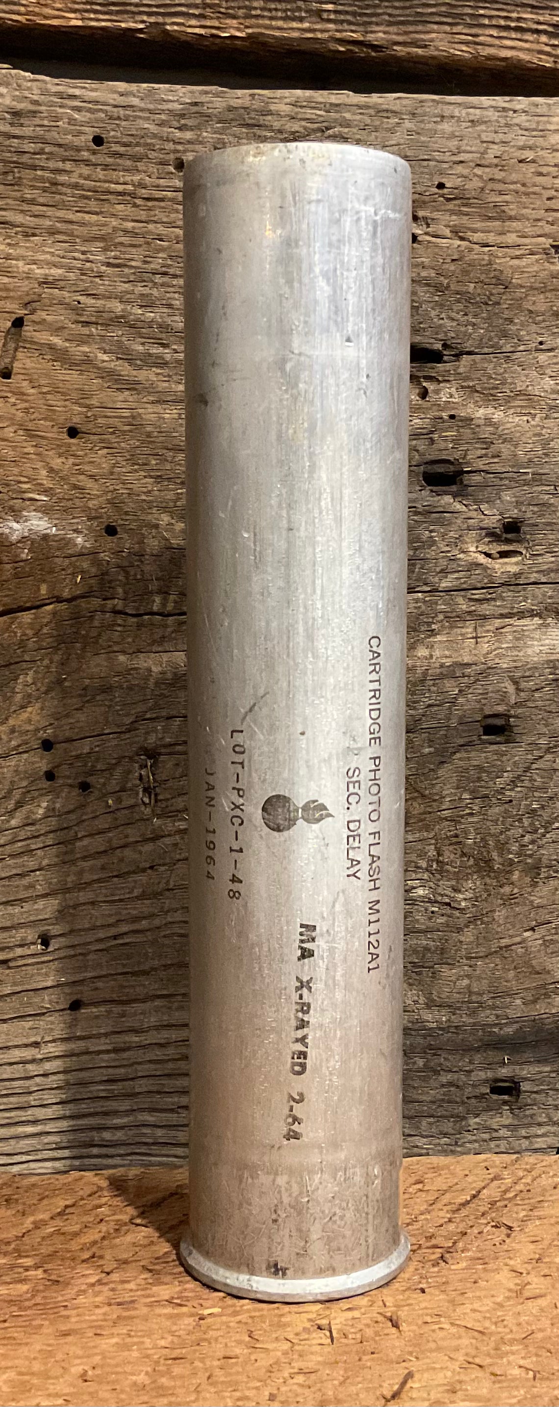 Vietnam Reconnaissance Photo Flash Cartridge. 2 second delay and dated January of 1964. Very rare empty Aluminum Cartridge Case.