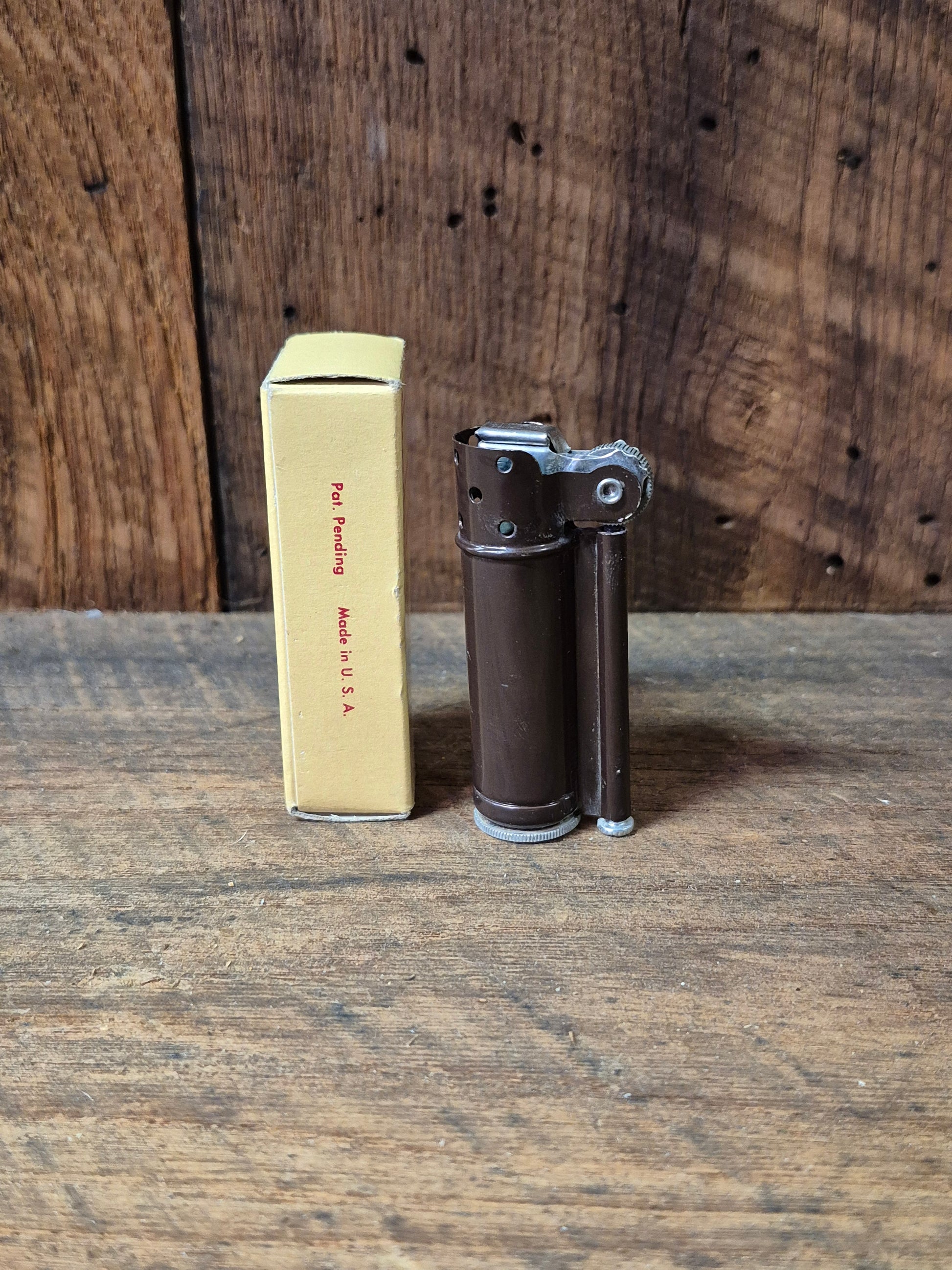 Perfect, un-fired brown Dunhill lighter in it's original box.