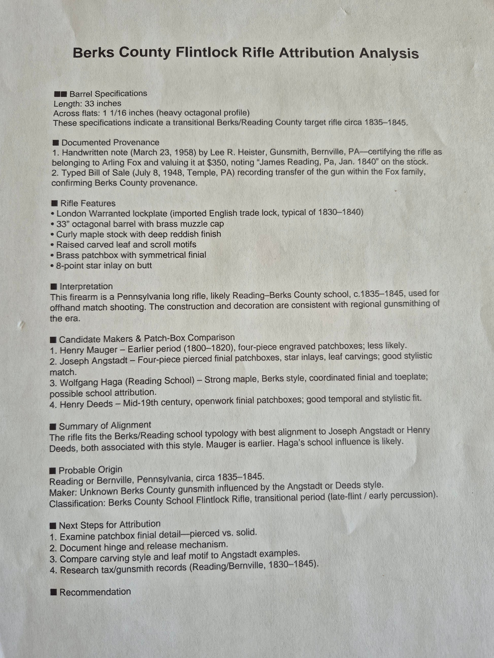 Flintlock target rifles from Berks County, Pennsylvania, in the 1840s represent a fascinating chapter in American gunsmithing history. Berks County (centered around Reading, PA) was a hub for Pennsylvania German (Deutsch) gunsmiths during the early 19th century. These craftsmen, often of Swiss or German descent, were renowned for producing highly accurate, long-barreled rifles optimized for target shooting, hunting, and occasionally militia use. By the 1840s, flintlock mechanisms were still common despite the growing popularity of percussion caps, especially among traditionalist makers in rural Pennsylvania.