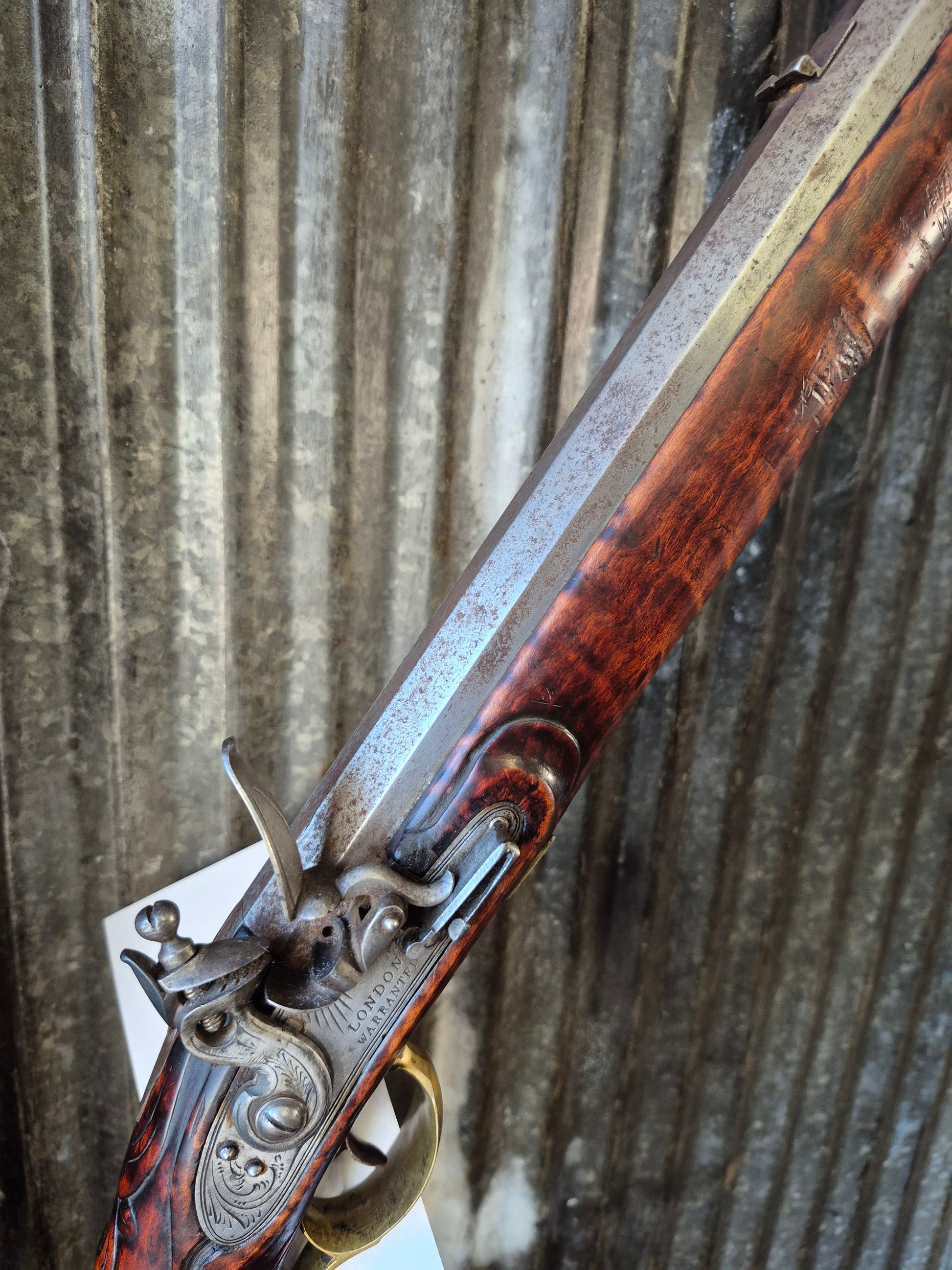 This rifle is cracked at the wrist and needs lock work. It will not stay at full cock.