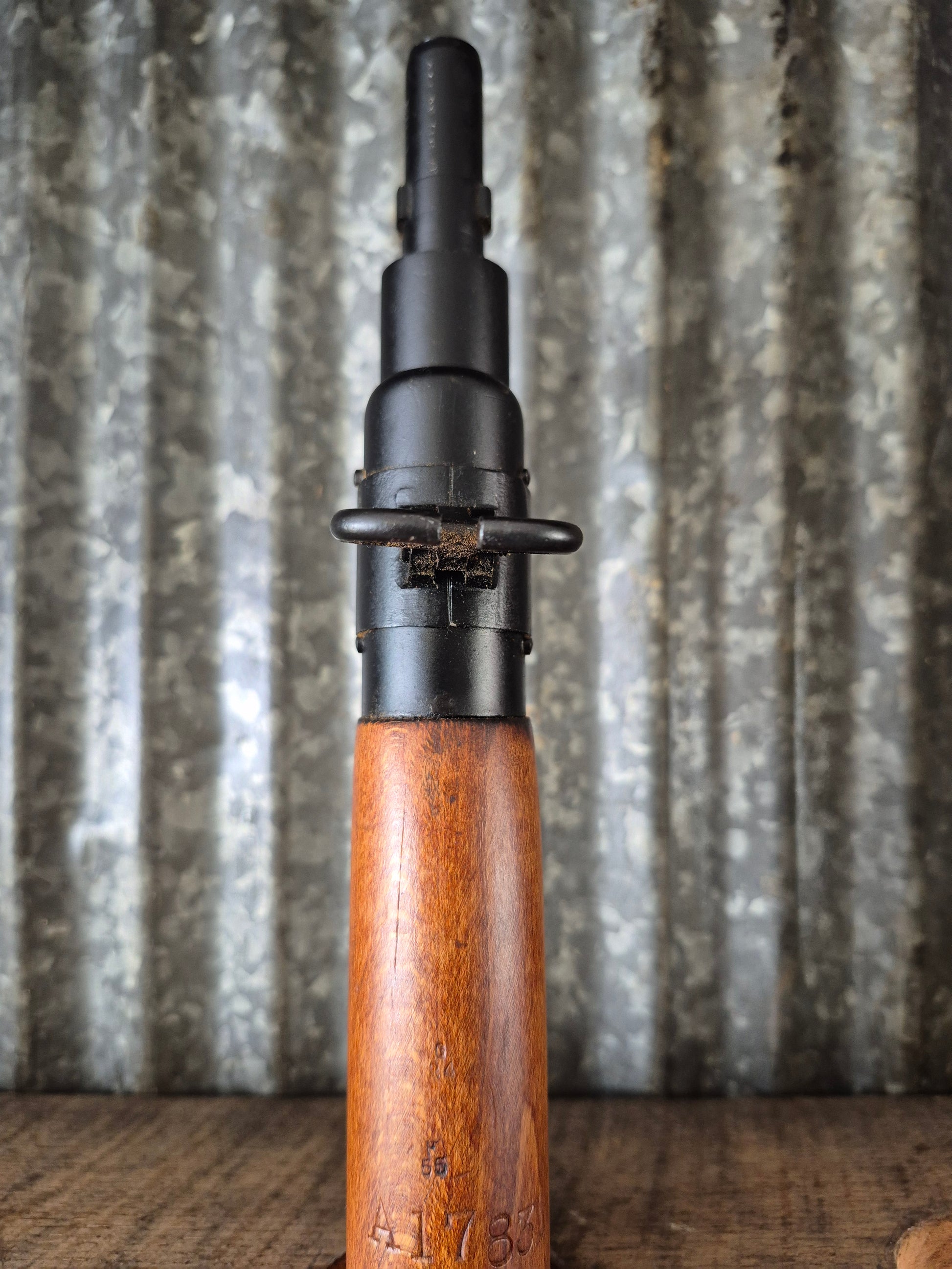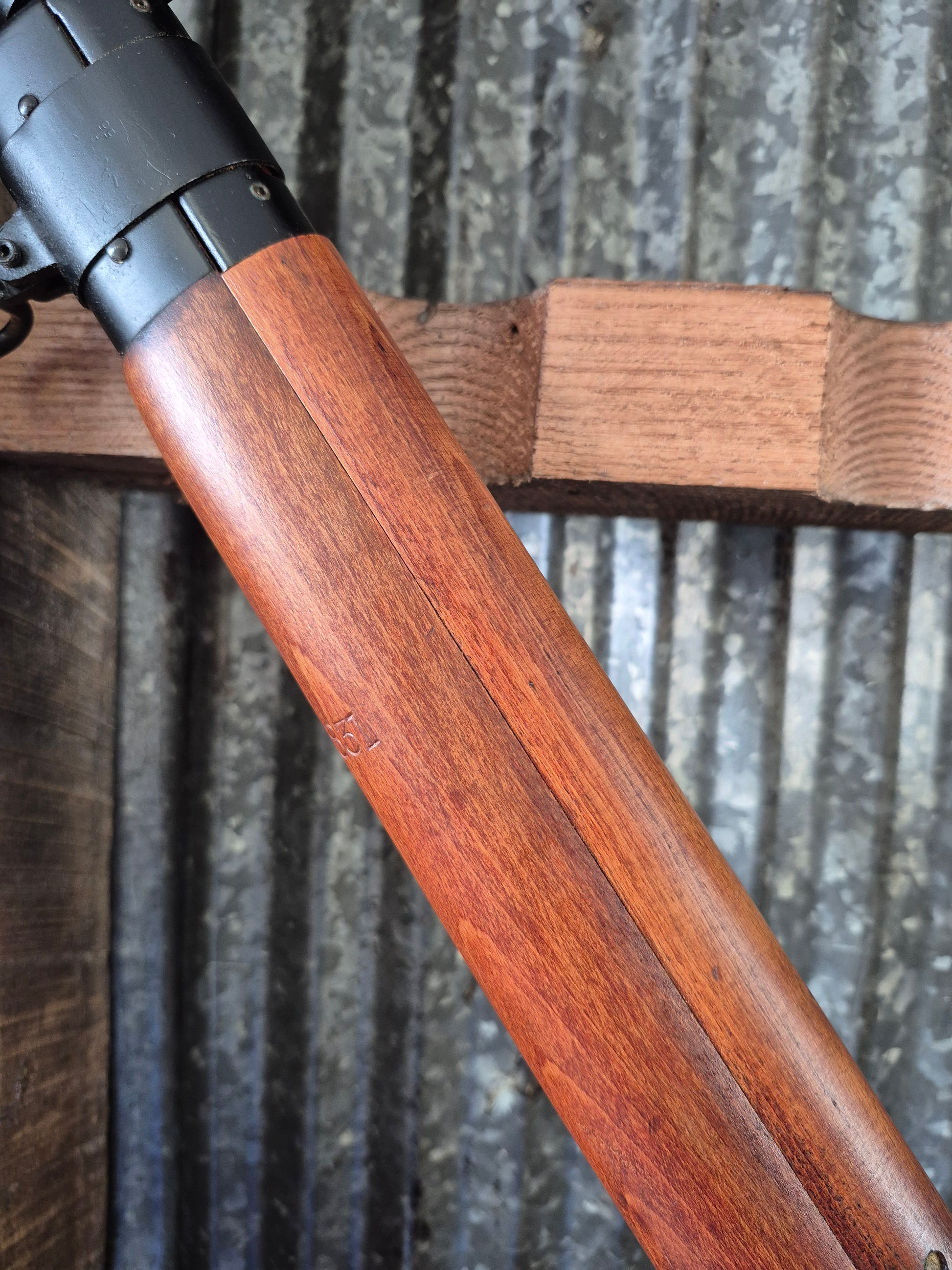 This is a stunning example of a Lee-Enfield No. 4 Mk II rifle from the UF55 production series, manufactured in 1955 at the Royal Ordnance Factory (ROF) Fazakerley in Liverpool, England. The "UF55" prefix on the receiver (visible in the markings as "No4 Mk2 UF55 A17831") indicates it was part of a late post-war batch of approximately 20,000 rifles produced specifically under contract for the Royal Air Force (RAF), marking the end of standard-issue Lee-Enfield rifle production in Britain before the shift to semi-automatic designs like the L1A1.cdd4585cd49e327523 These were among the final "new-build" No. 4 Mk II rifles, featuring improvements over earlier wartime models, such as a wooden buttstock with a cut for the magazine (to prevent interference during reloading), a redesigned bolt with a knobbed handle for easier operation, and a high-lustre blued finish on the metal components.53b185c00ed9