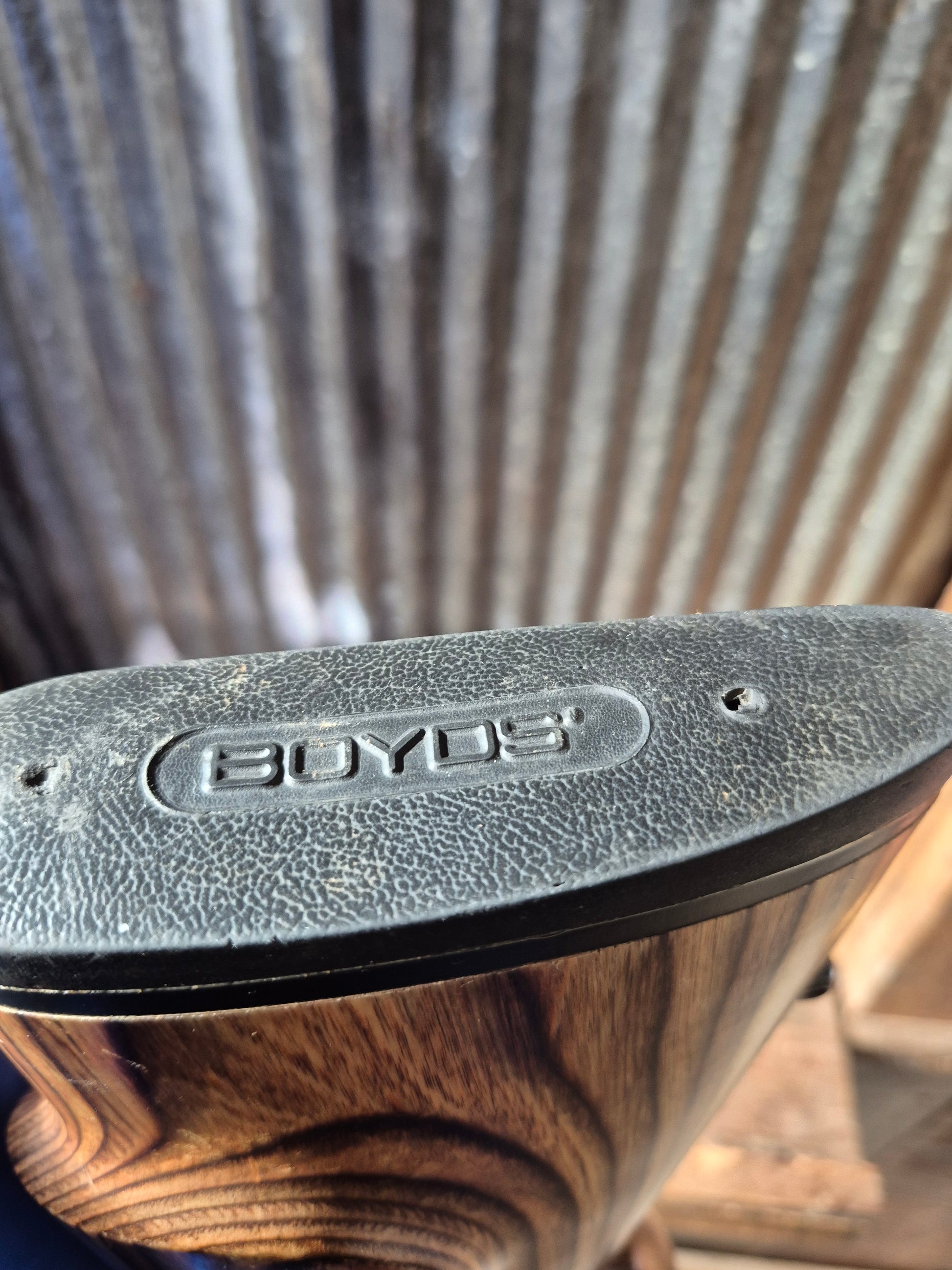 Remington 700 ADL 25-06, fitted in a Boyds thumbhole laminate stock.