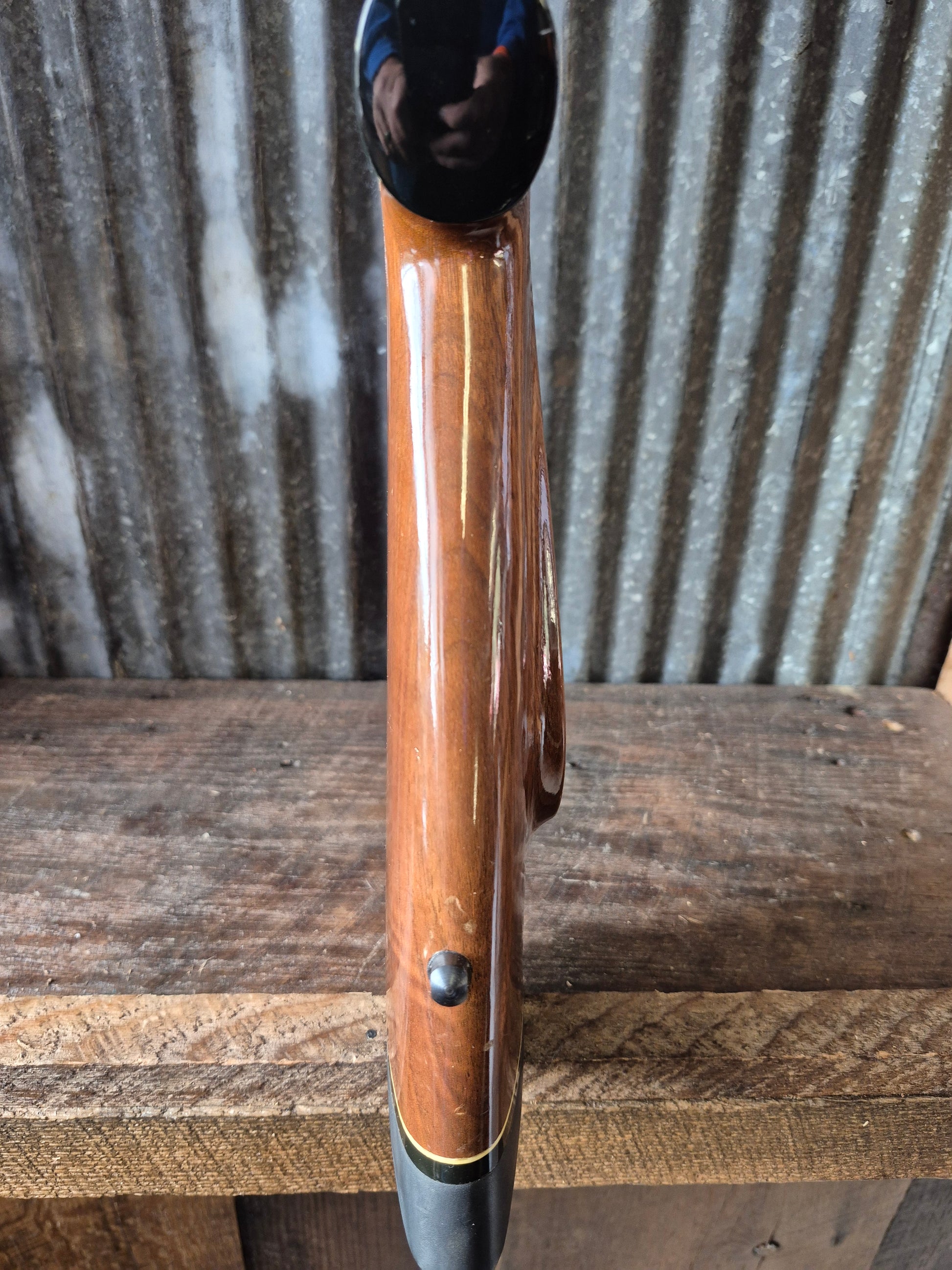 Brass pinned stock with high gloss finish.