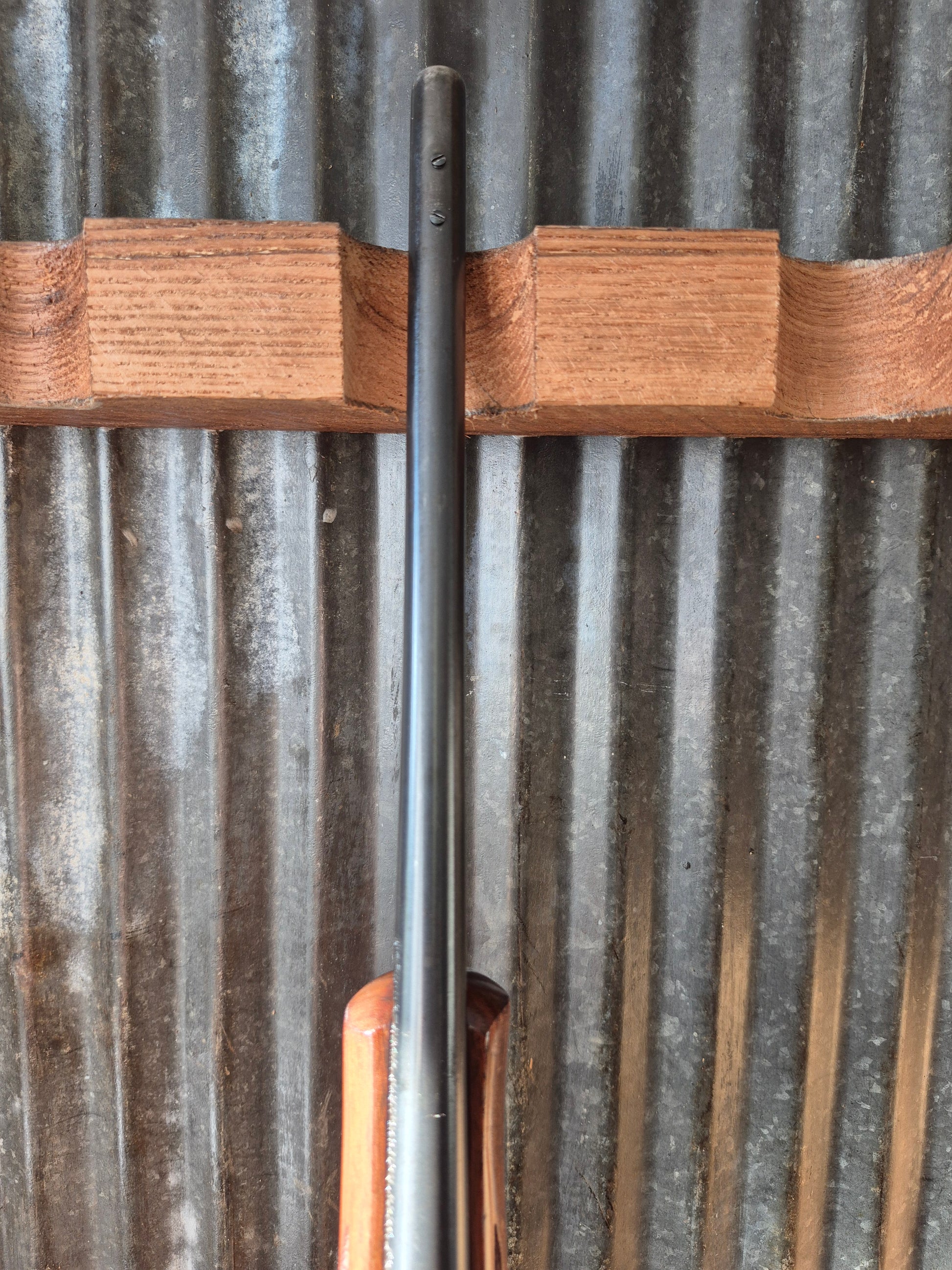 Production of the Model 7 began in 1983 at Remington's Ilion, New York facility, with the .243 Winchester as one of five inaugural chamberings (alongside .222 Remington, .223 Remington, 6mm Remington, and 7mm-08 Remington). The .243 Win., a versatile cartridge developed by Winchester in 1955 for varmint and deer hunting, was a natural fit for the Model 7's short-action platform. It offered low recoil, flat trajectories, and effective performance on medium game like whitetail deer, antelope, or coyotes, with bullet weights typically from 55 to 100 grains.