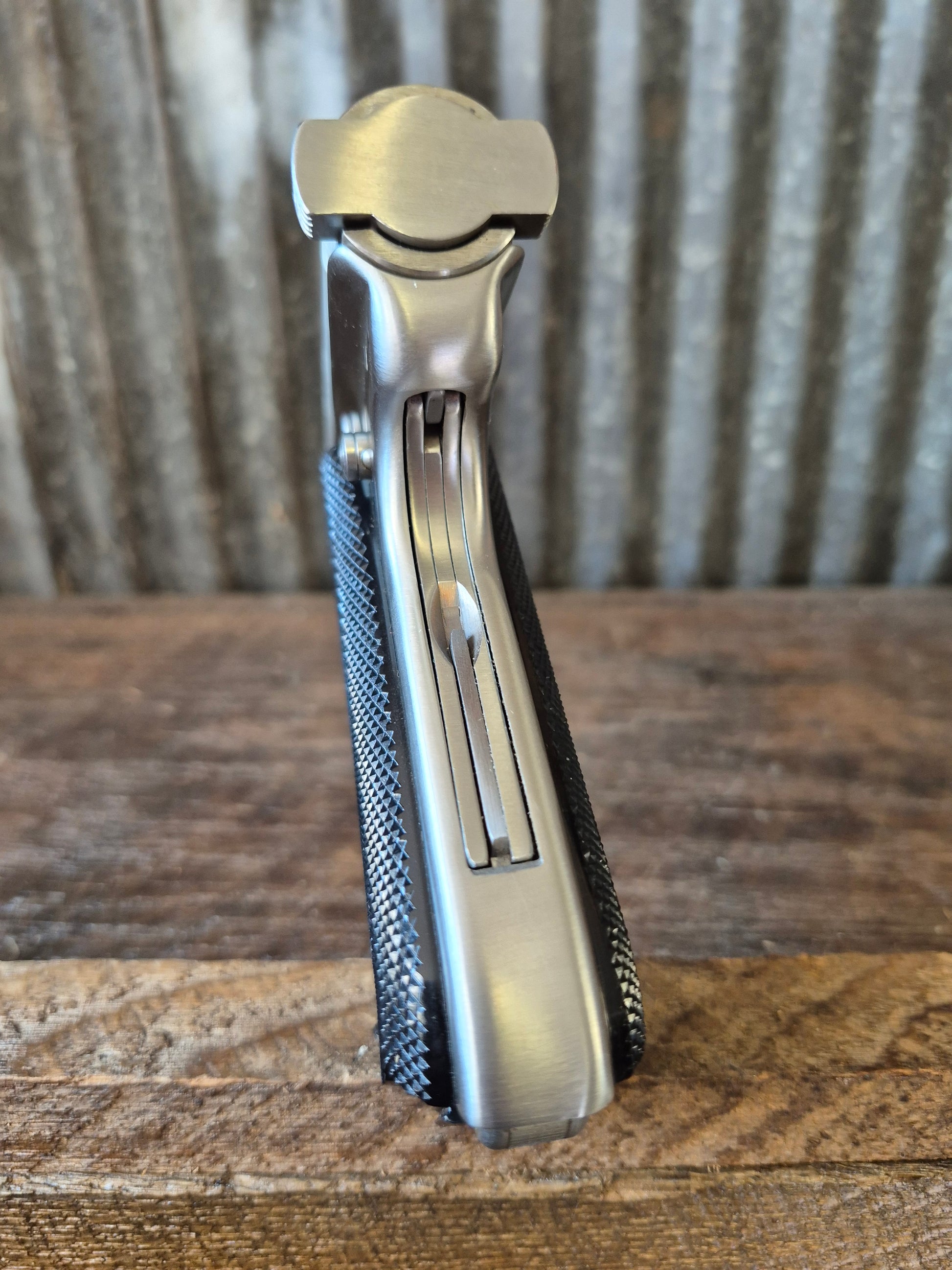 Grips: Checkered black plastic (laminate-style; aftermarket options like walnut or Hogue rubber are common)