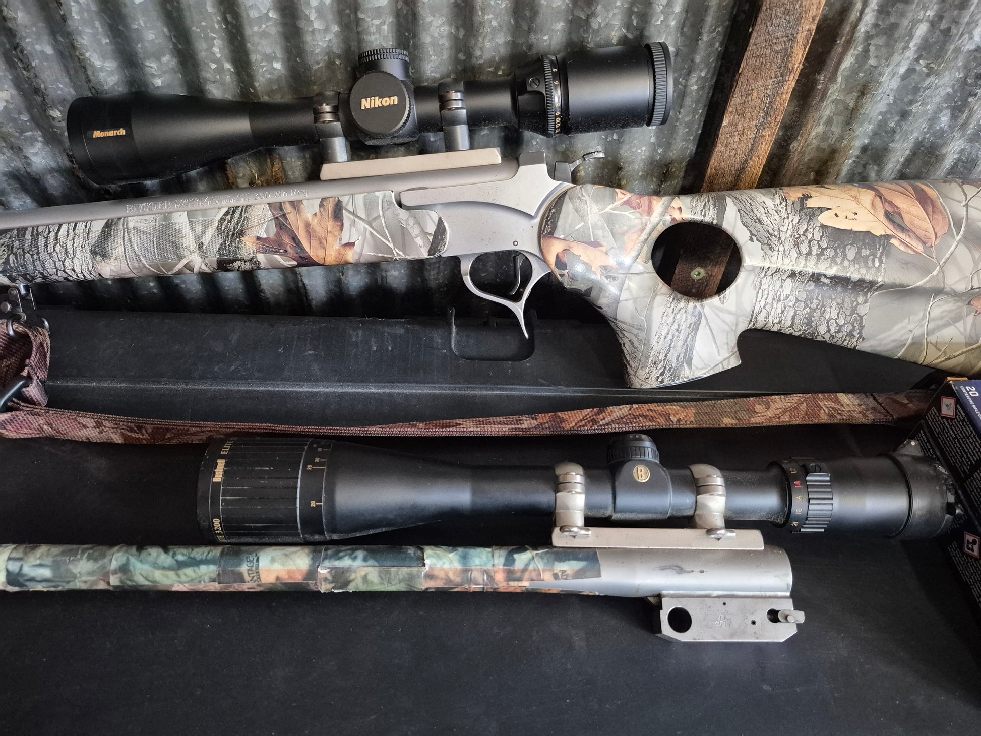 This package comes with 4 boxes of 300 Winchester magnum ammo, the 26" stainless 300 Winchester mag barrel with brake and Nikon Monarch 3-12 scope on Leopold base and rings.