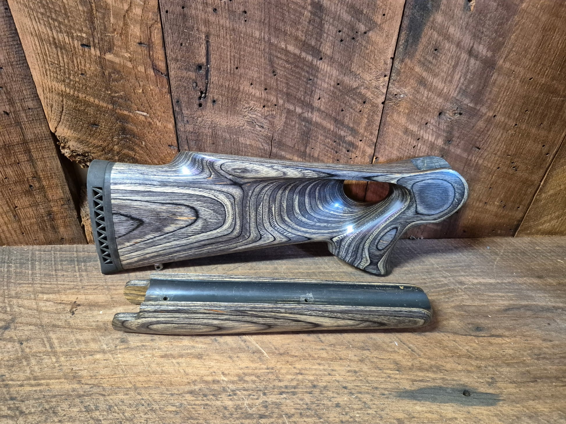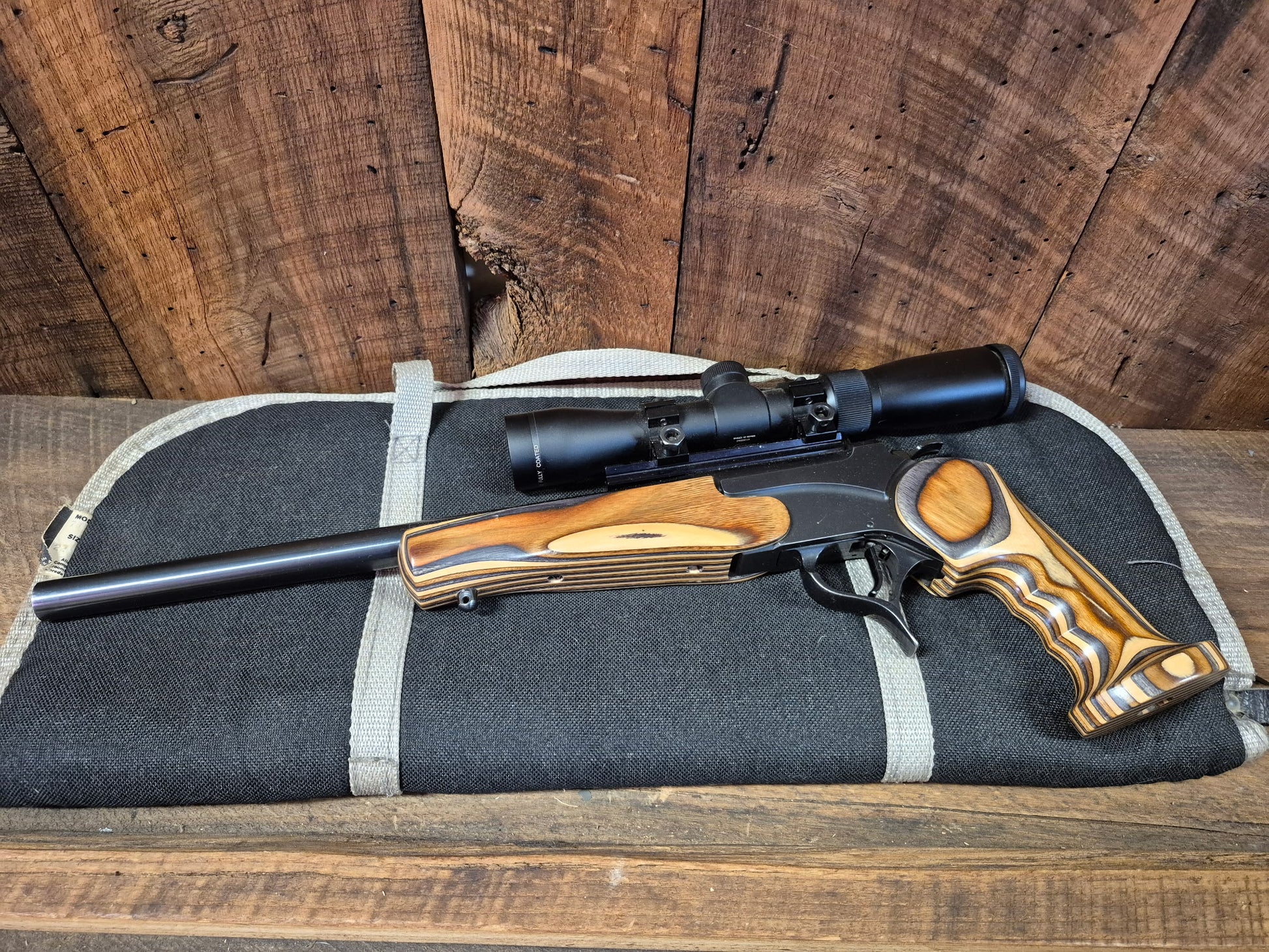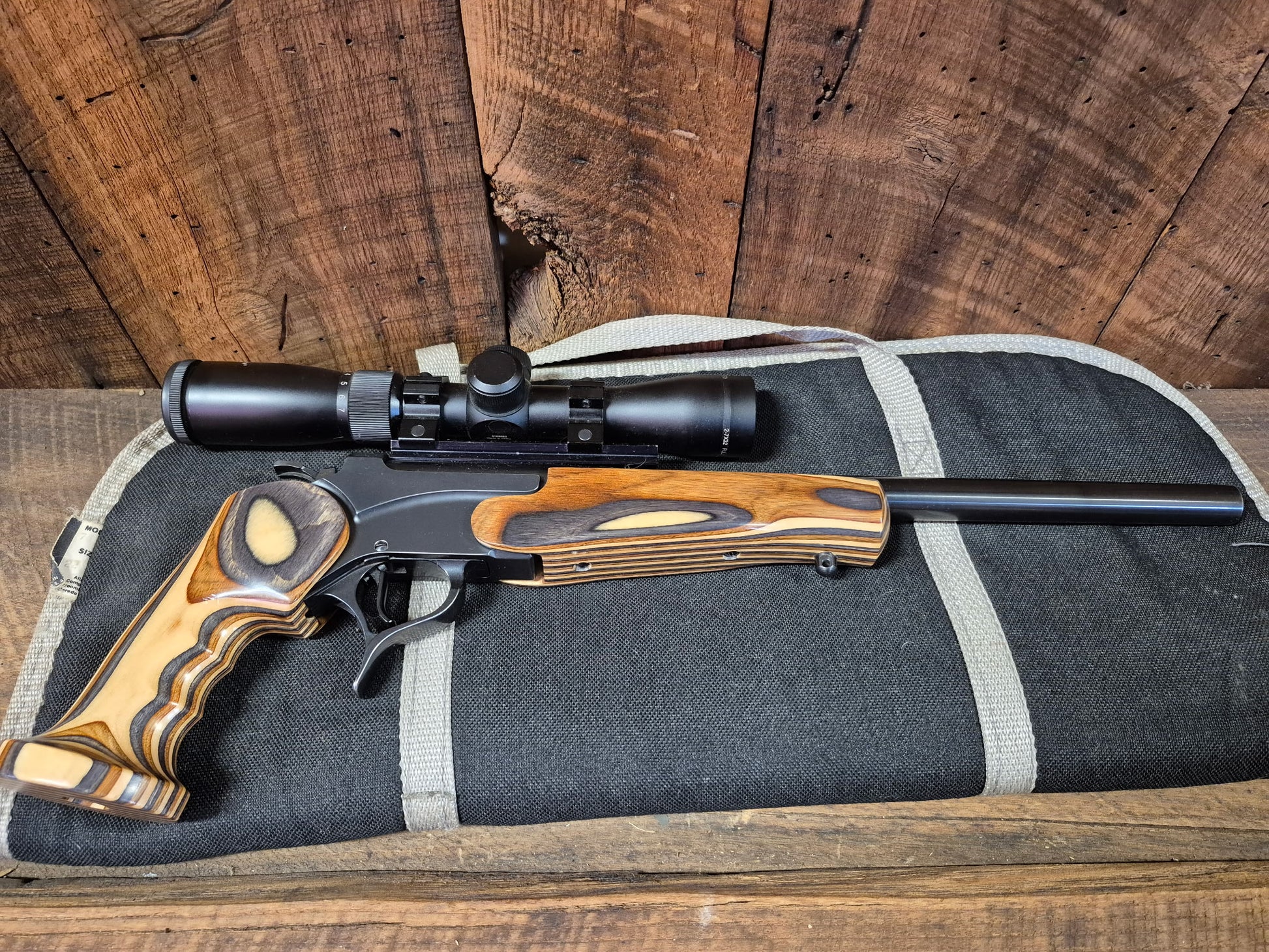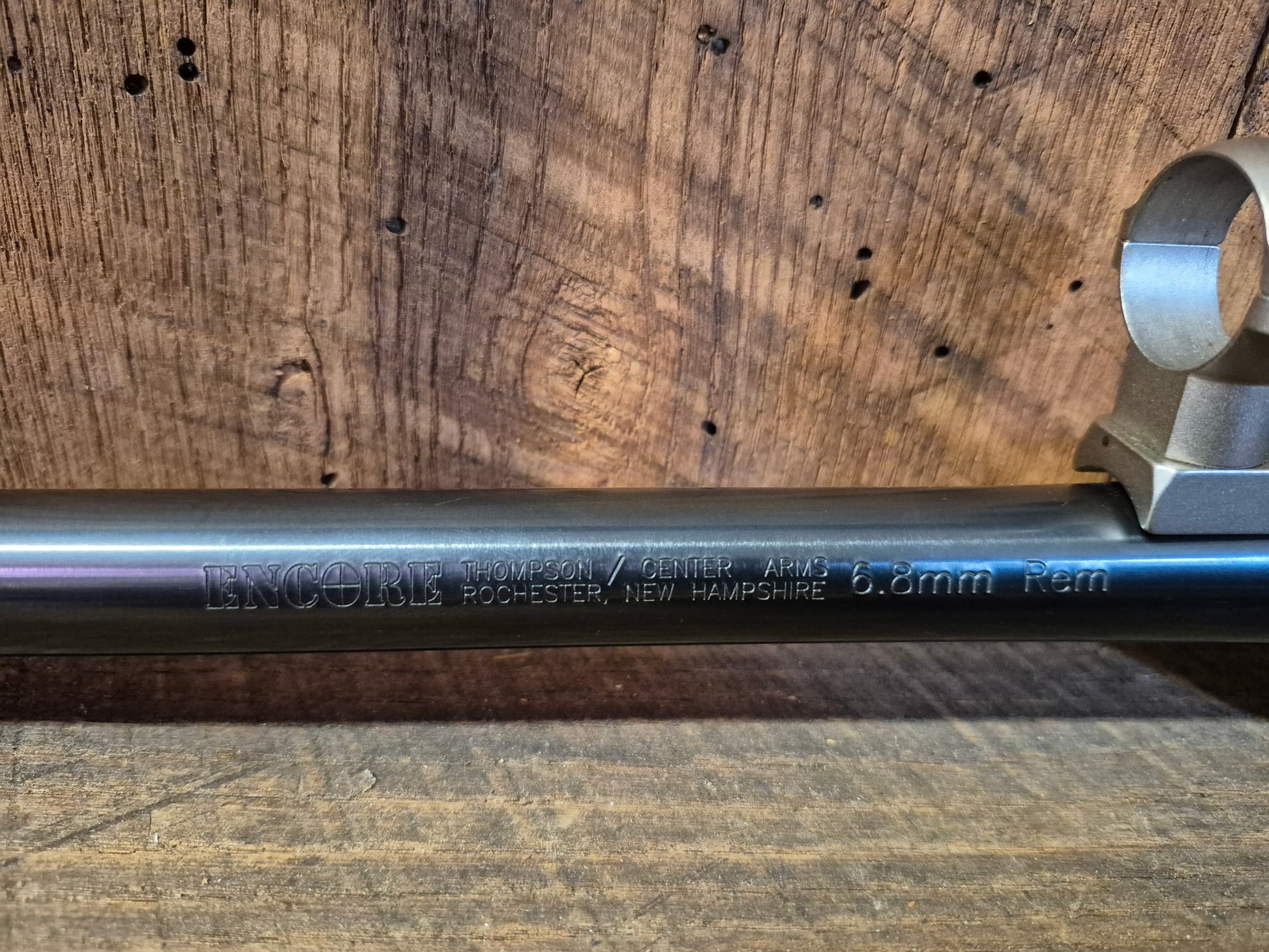 Original Thompson Center Encore Package, 15 inch 22-250 barrel with scope, 15 inch TC Custom Shop 209x50 Muzzle loader barrel with forearm and scope, and a 26 inch standard Encore taper 6.8 Remington with luepold base and rings. Three rifle stock sets, butt stocks all have bolts. The forearms do not have the screws in each set, however the screws are in the pistol set on the 22-250 barrel.
