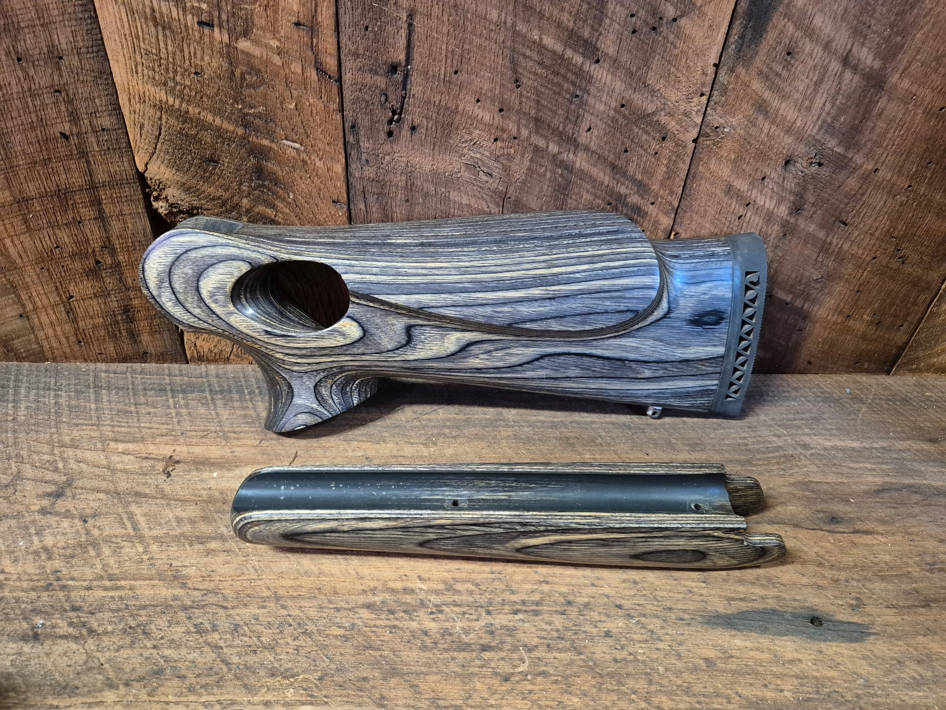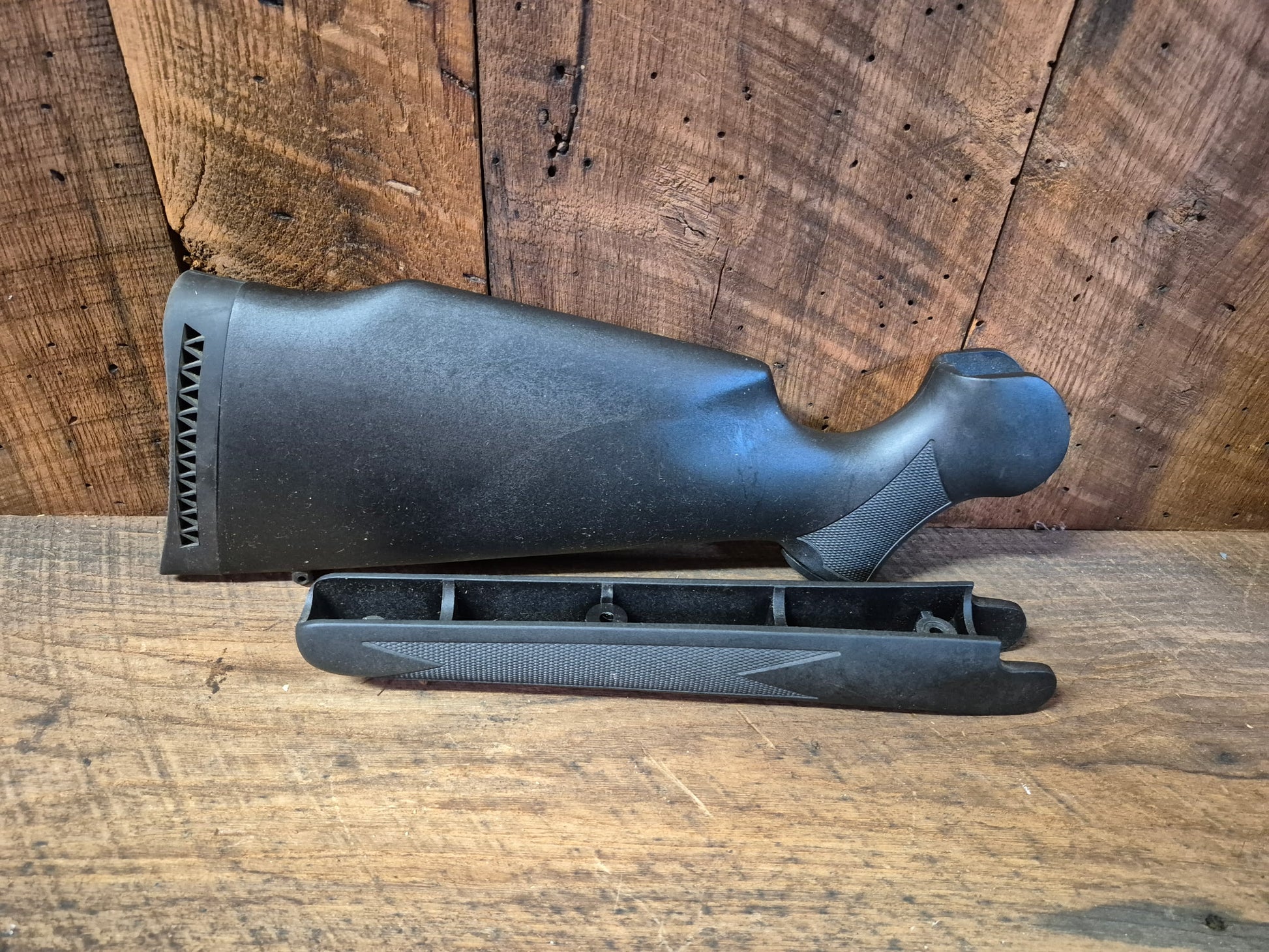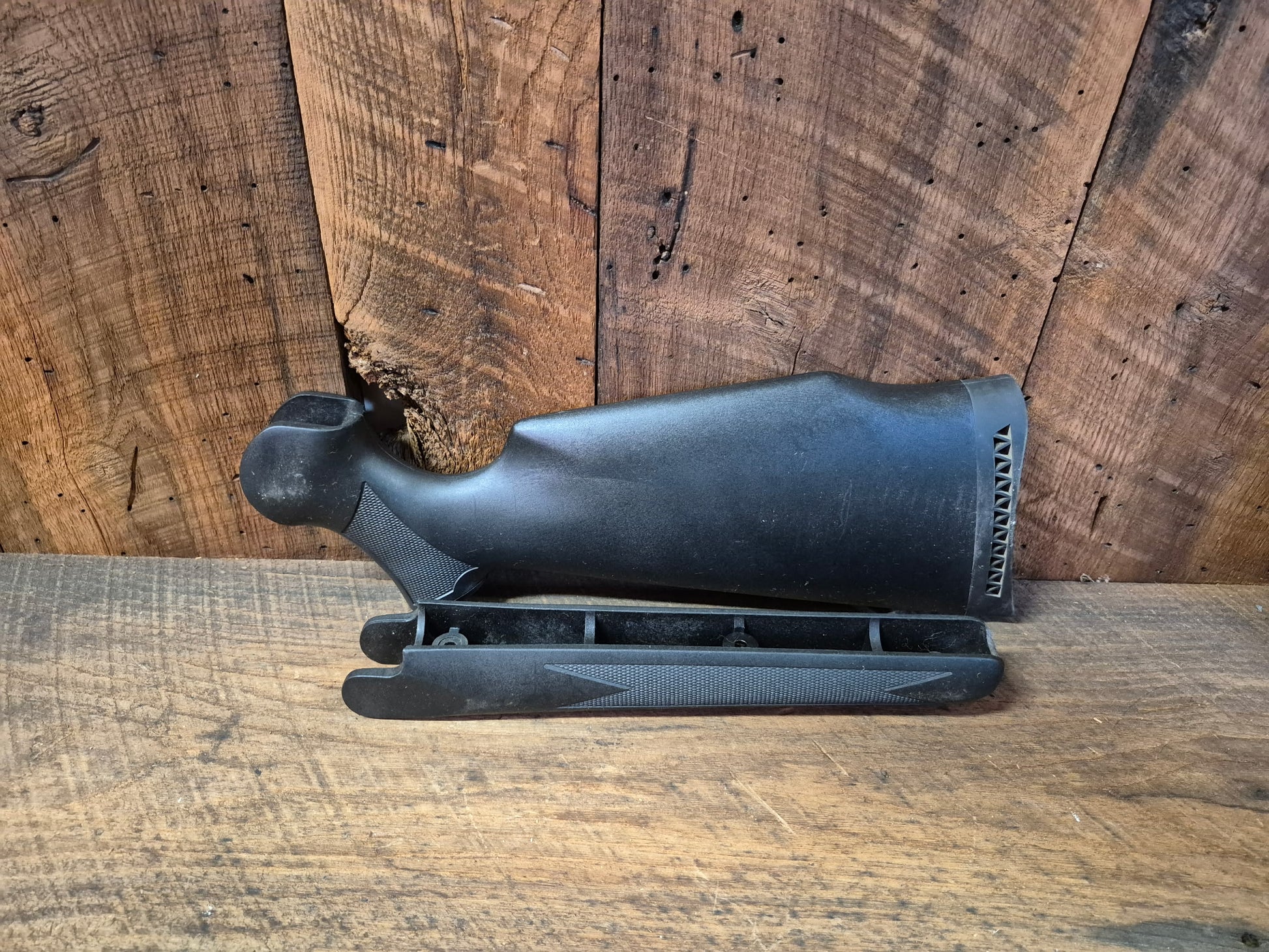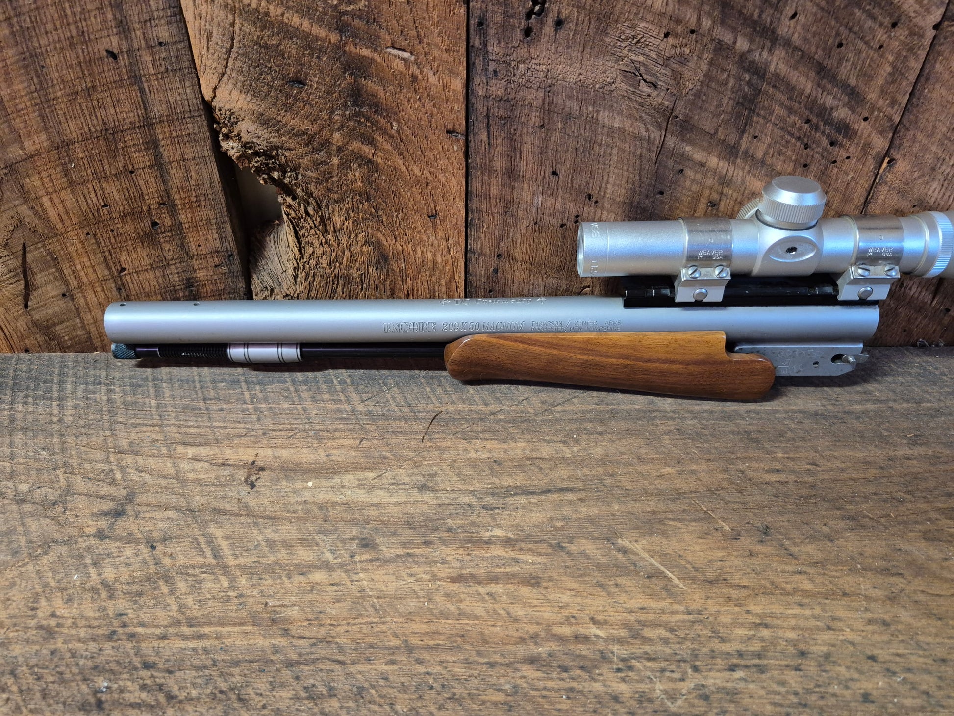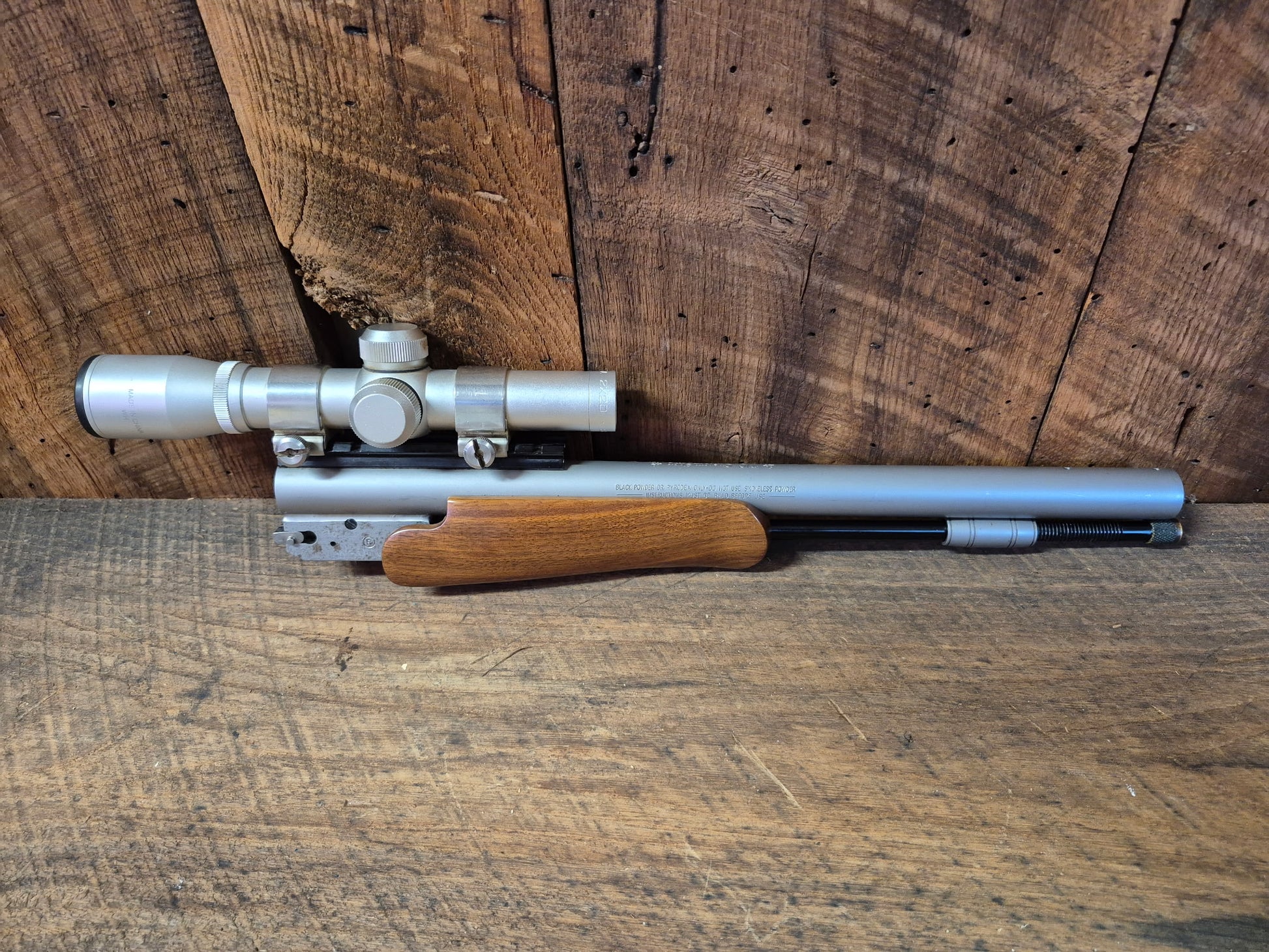 Original Thompson Center Encore Package, 15 inch 22-250 barrel with scope, 15 inch TC Custom Shop 209x50 Muzzle loader barrel with forearm and scope, and a 26 inch standard Encore taper 6.8 Remington with luepold base and rings. Three rifle stock sets, butt stocks all have bolts. The forearms do not have the screws in each set, however the screws are in the pistol set on the 22-250 barrel.
