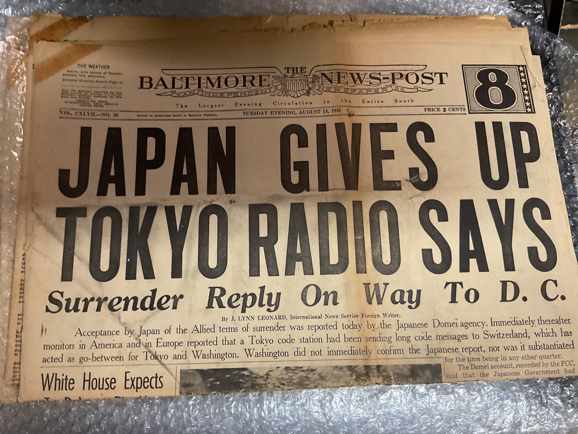 The Baltimore News Post Aug 14 1945 “Japan gives up”