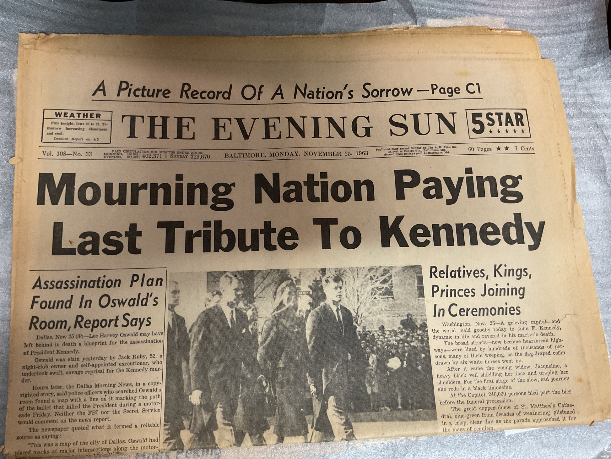 The Evening Sun Nov 25, 1963 “Tribute to Kennedy”