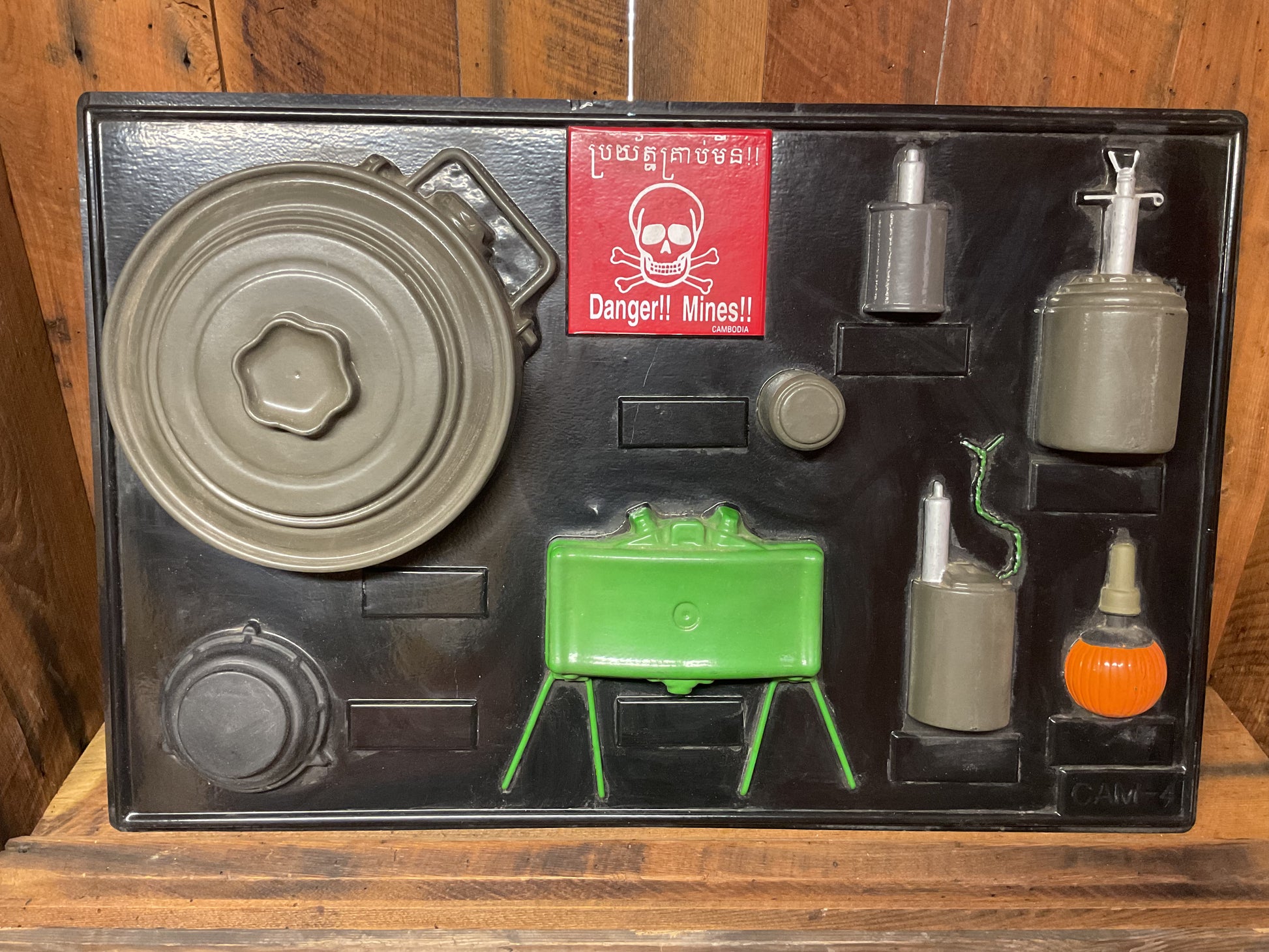 Large plastic countermine training aide display board. Approximately 24”x34”. This board is for training in Cambodia.