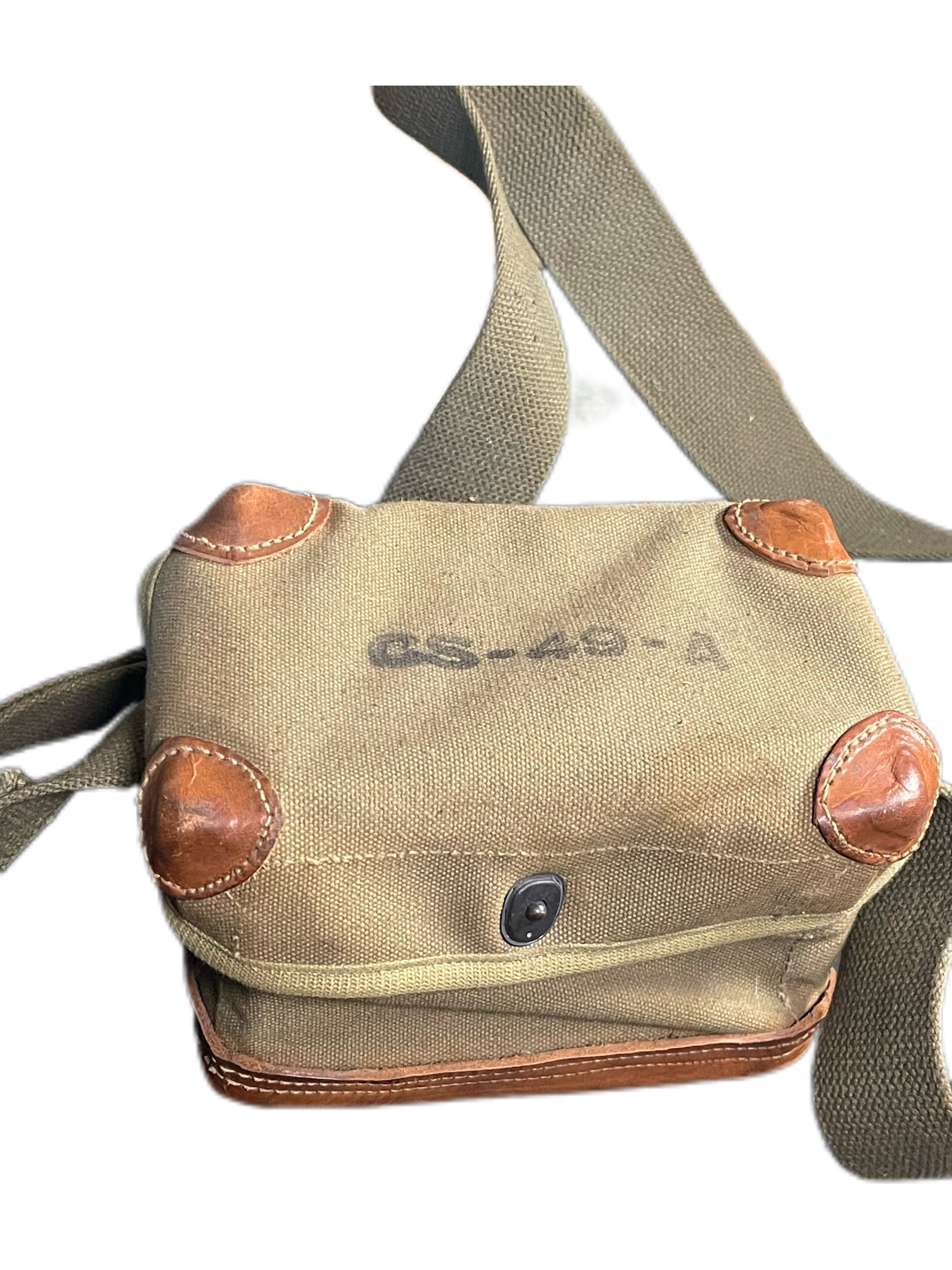 The TG-5-B was a critical tool for the U.S. Army Signal Corps during World War II, enabling secure, point-to-point communication via Morse code in the field. Used when radio silence was necessary or in environments where radio signals could be intercepted, this portable telegraph set played a vital role in tactical operations. The device is housed in its original olive drab canvas case (marked “CS-49-A”), featuring leather-reinforced corners and a sturdy shoulder strap for easy transport. The case shows minimal wear, with crisp stitching and no significant damage, reflecting its careful storage over the decades.