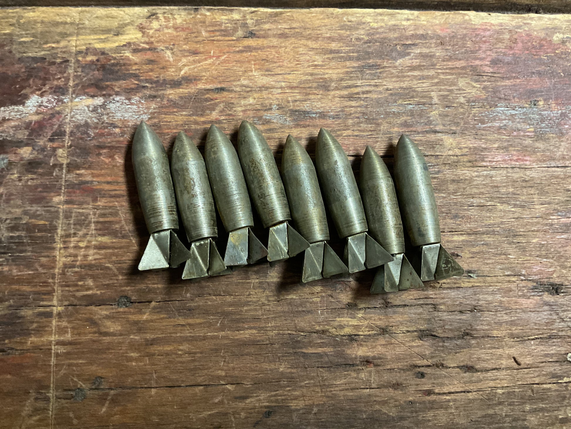 These are Vietnam War era bombs/flechettes nicknamed lazy dogs that would be dropped over enemy territory.