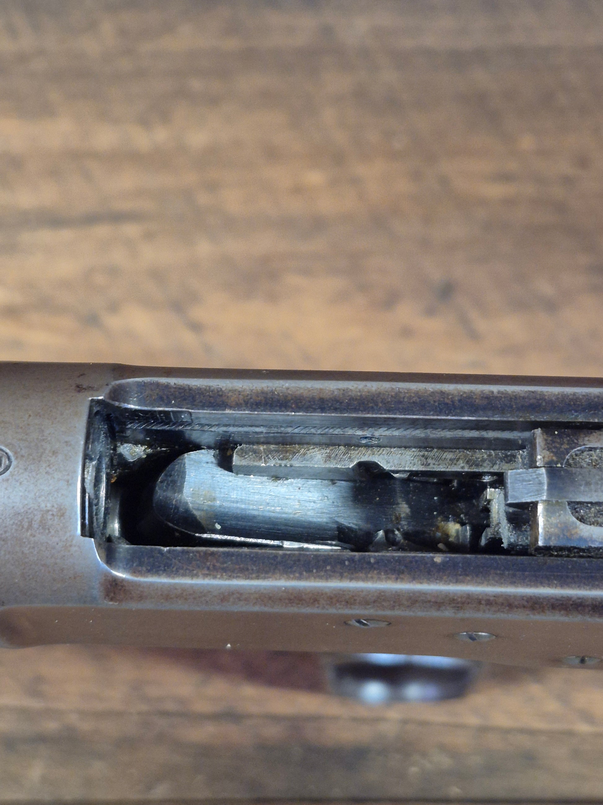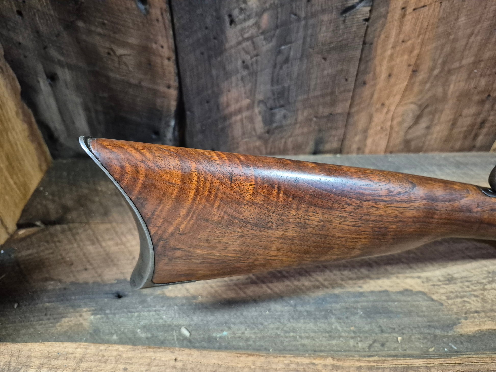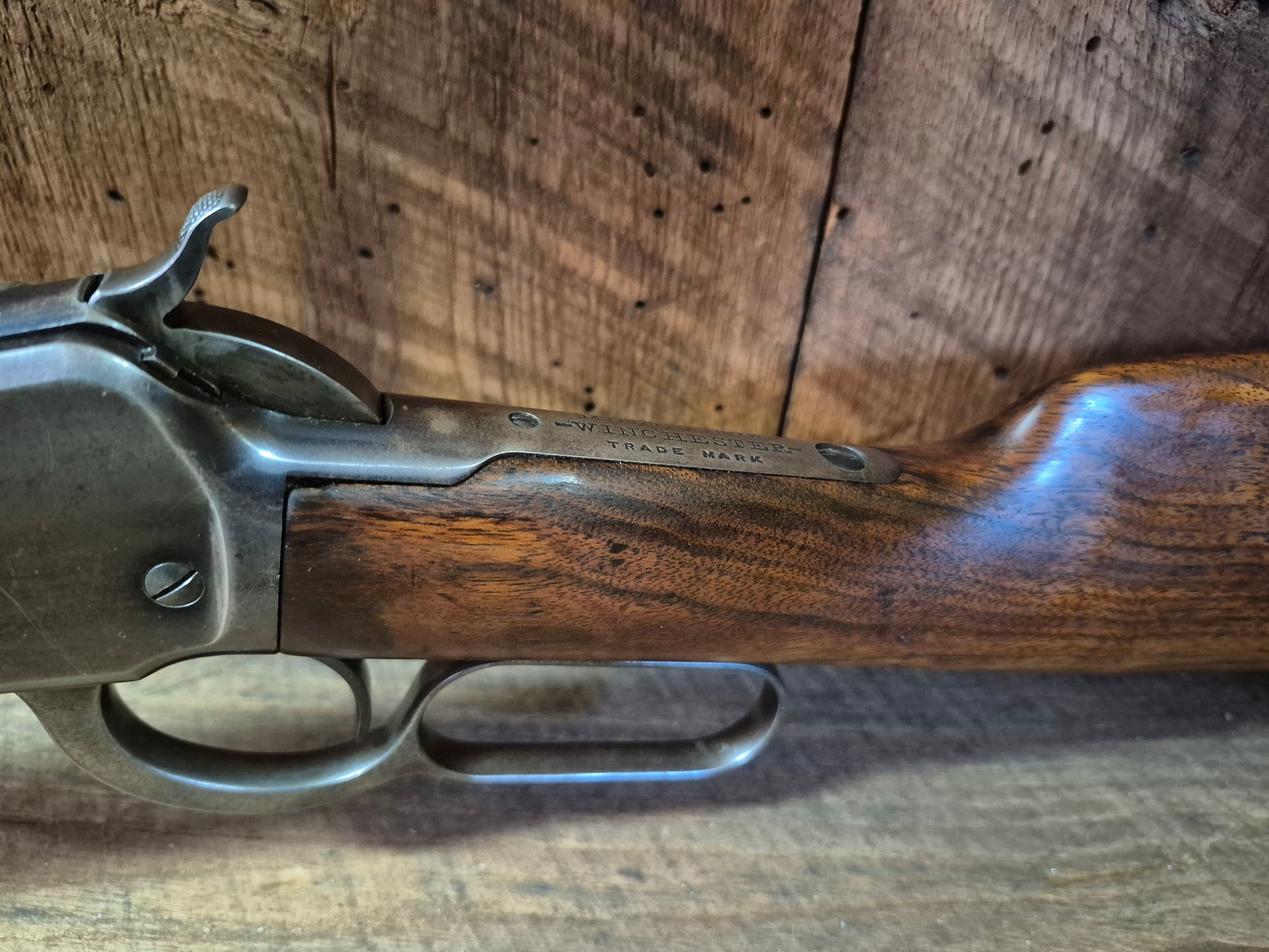 Absolutely beautiful model 92 takedown 32 wcf. The wood is in fantastic condition with little shrinking and lots of figure! The metal still retains some of the original bluing on the receiver and the bore is in better condition than the outside of this beautiful rifle! There is a name and what we believe to be the SSN associated with that name, visible on the belly of this rifle, as seen in the serial number pictures. 1907 MFG date by serial number.