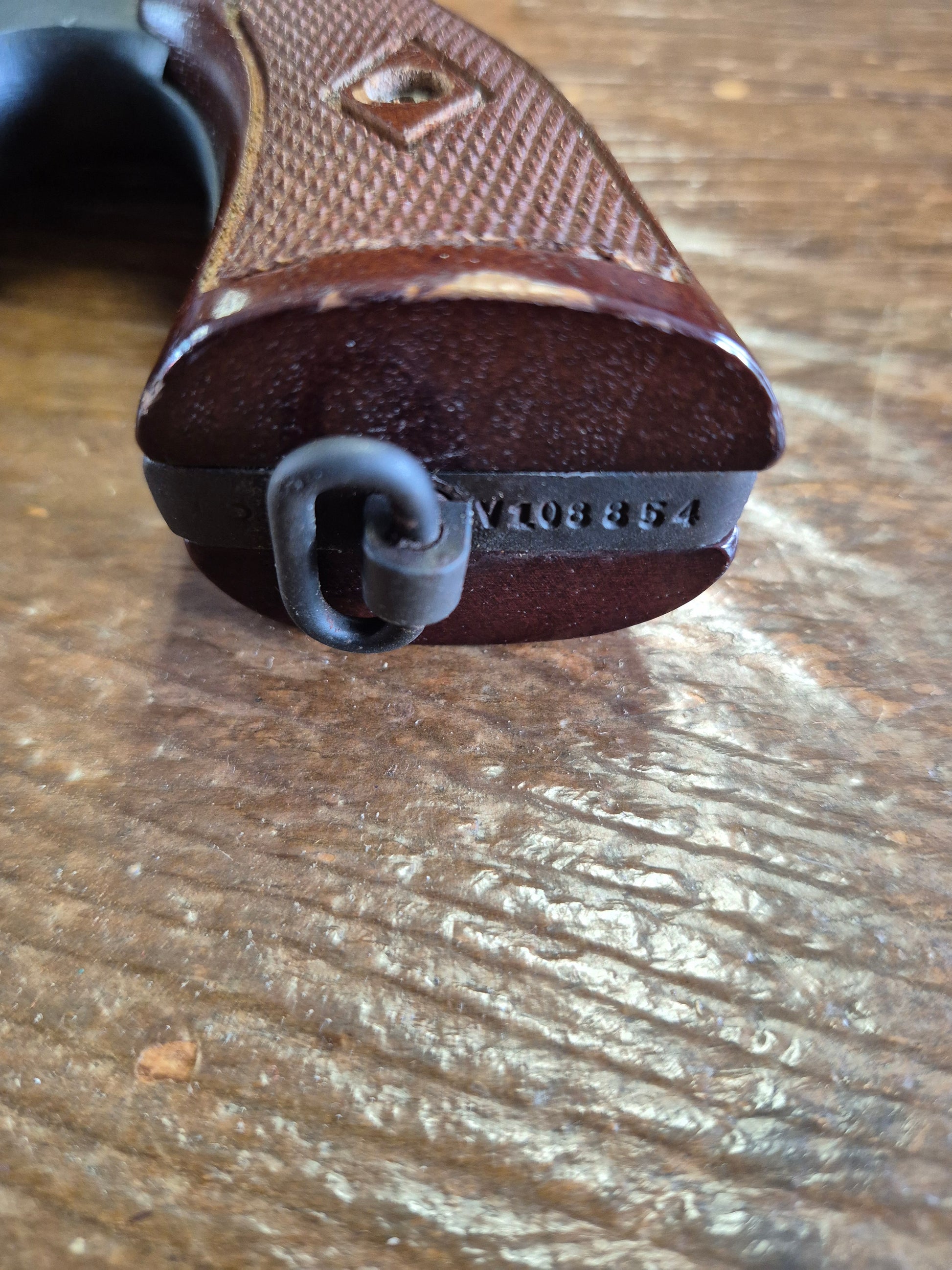 Cool piece of WW2 history in this 38 s&w Victoy Smith and Wesson service revolver. Manufactured in 1944 or 1944 with Sile magna checkered grips.