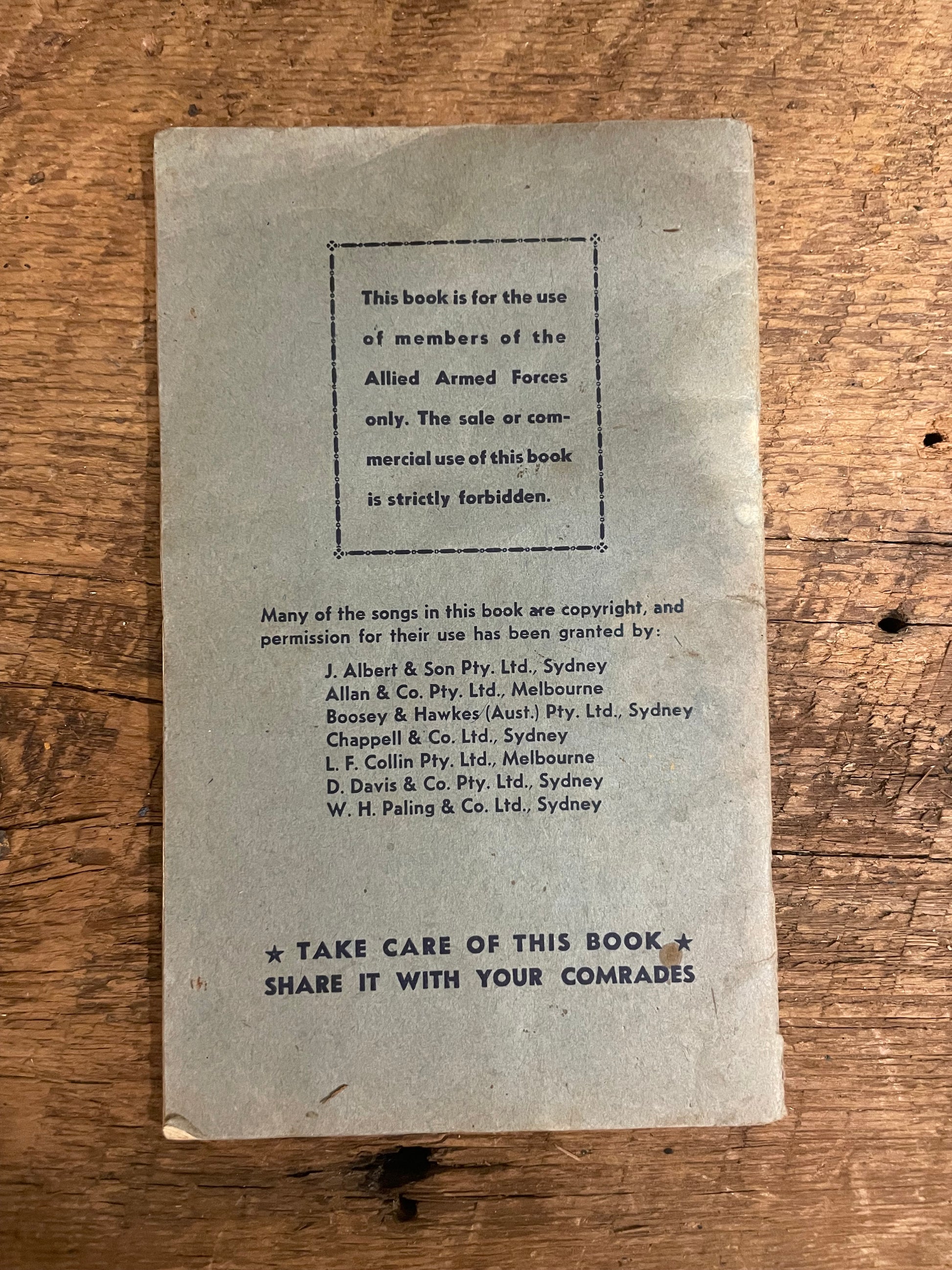 WW2 US Army Song Book Produced for American Troops Stationed in Australia 41-45