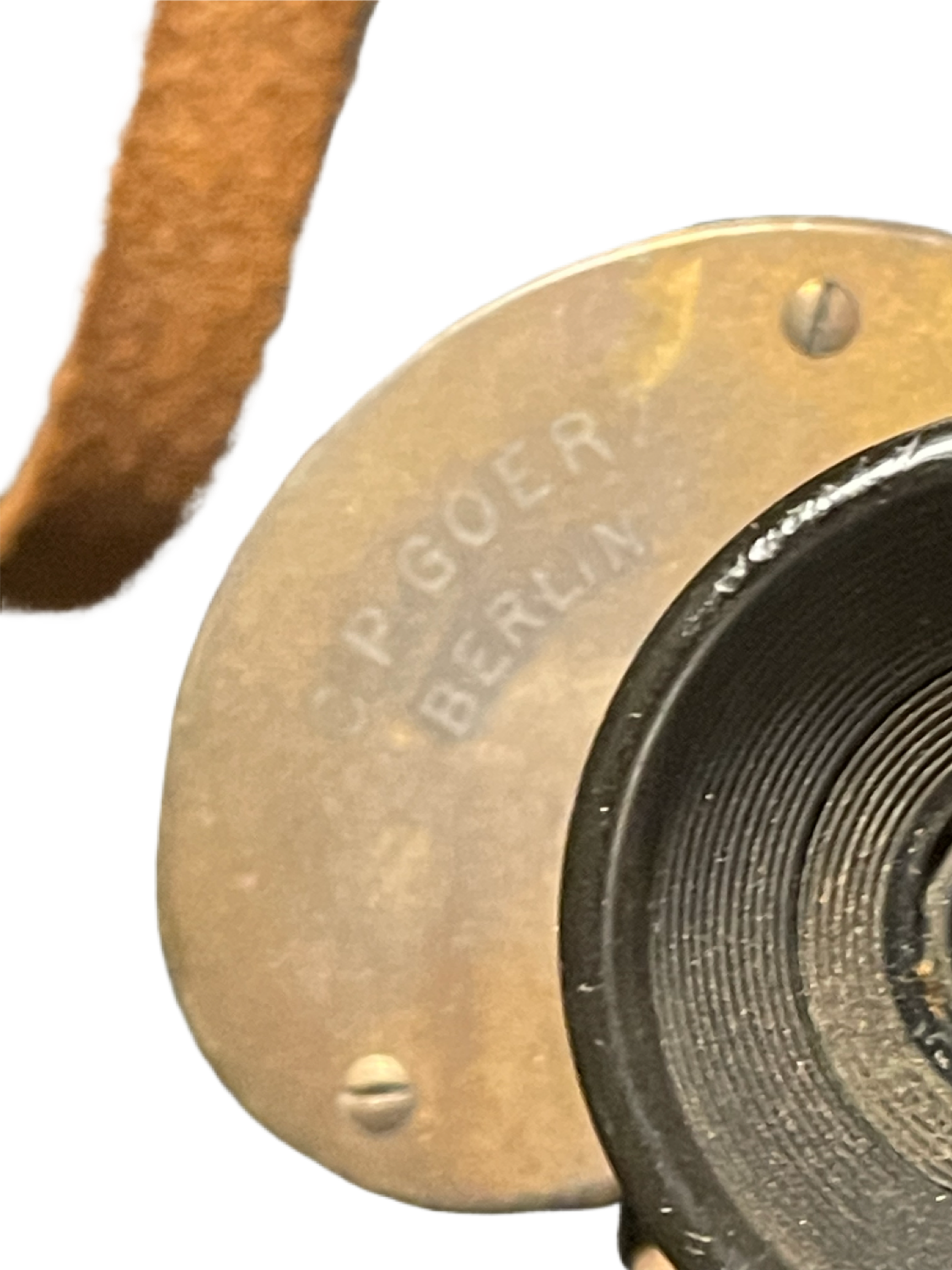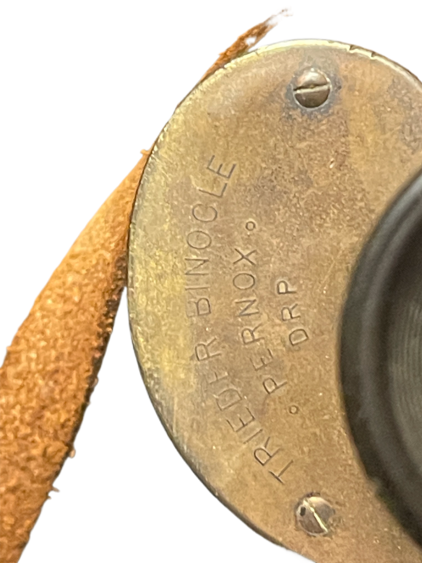 The accompanying leather case, made by Huet & Cie of Paris, is a rare and fascinating addition. Inscribed with “Société Anonyme des Anciens Établissements HUET & CIE ET JUMELLES FLAMMARION, FOURNISSEUR DES MINISTÈRES DE LA GUERRE ET DE LA MARINE, 14 RUE DU TEMPLE PARIS,” the case indicates these binoculars were supplied to the French military, likely before the outbreak of WWI when French and German optical companies still collaborated. The case appears to be custom-made for this specific pair, with its interior shape and small ledges conforming precisely to the curve of the binoculars, ensuring a snug and secure fit.