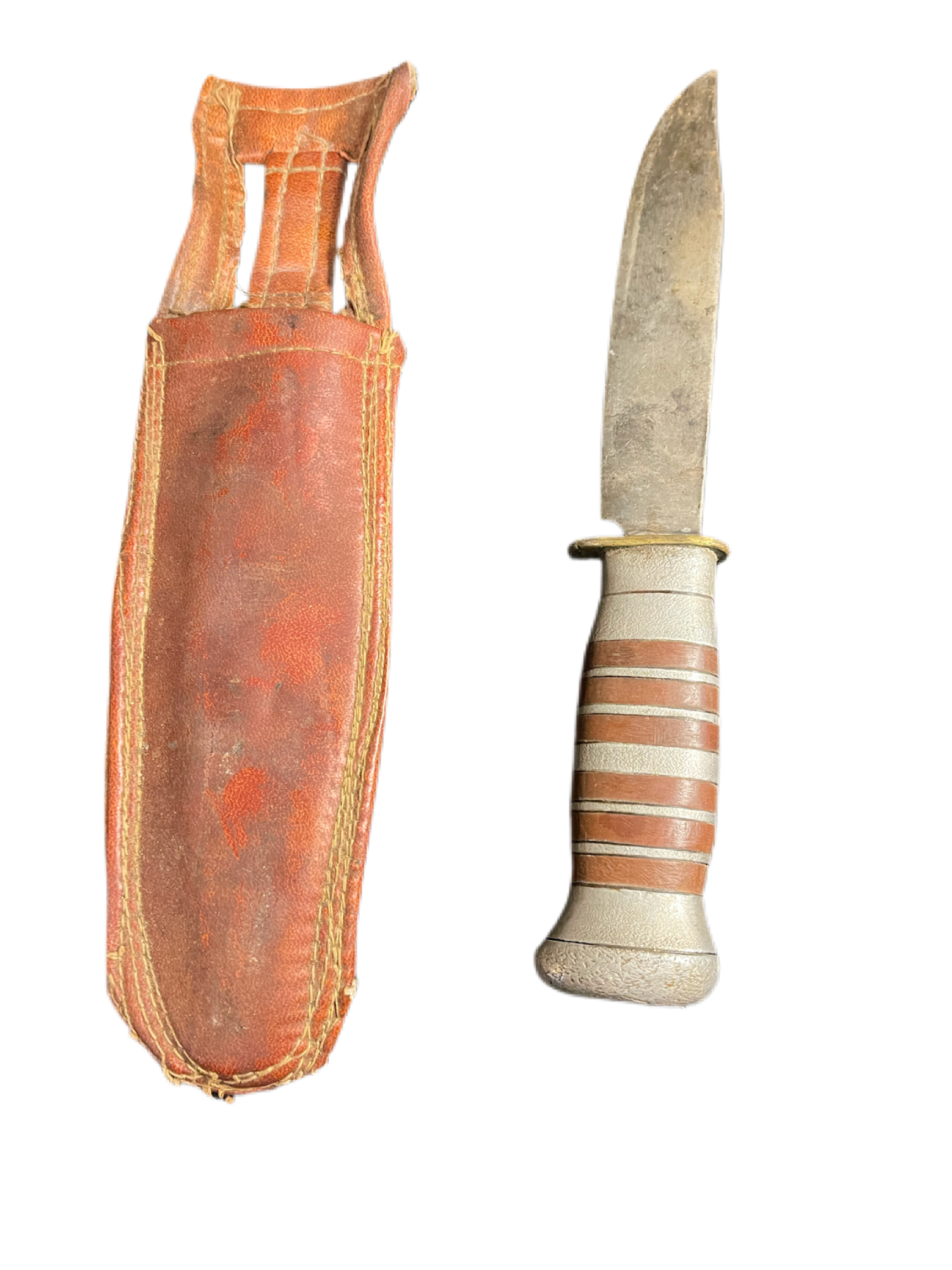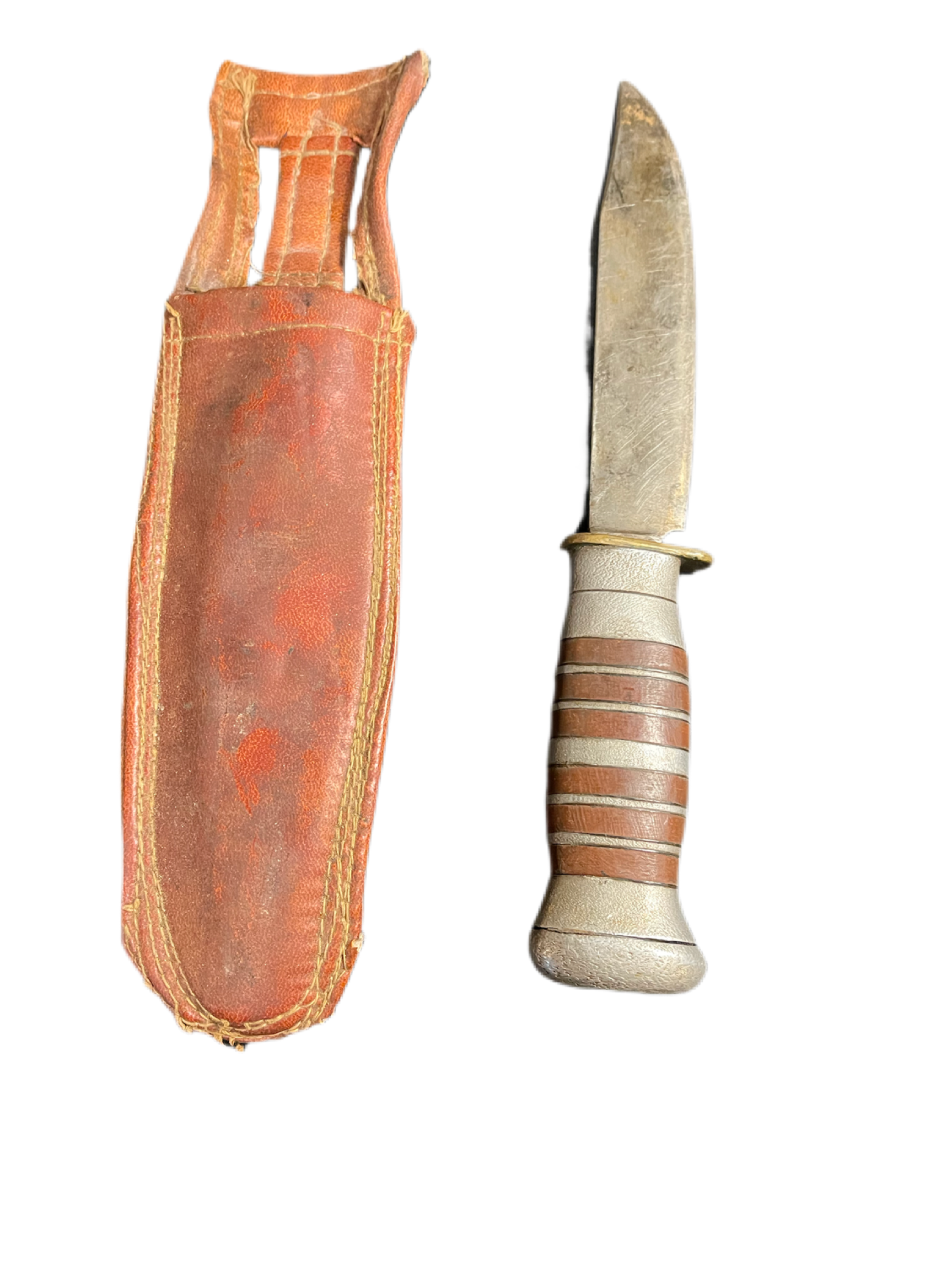 Perfect for collectors of military antiques, this WWII theater knife is a tangible connection to the soldiers who relied on such tools. Its condition preserves the character of its history, making it a standout addition to any collection. Don’t miss the chance to own this unique artifact from one of history’s most pivotal conflicts.