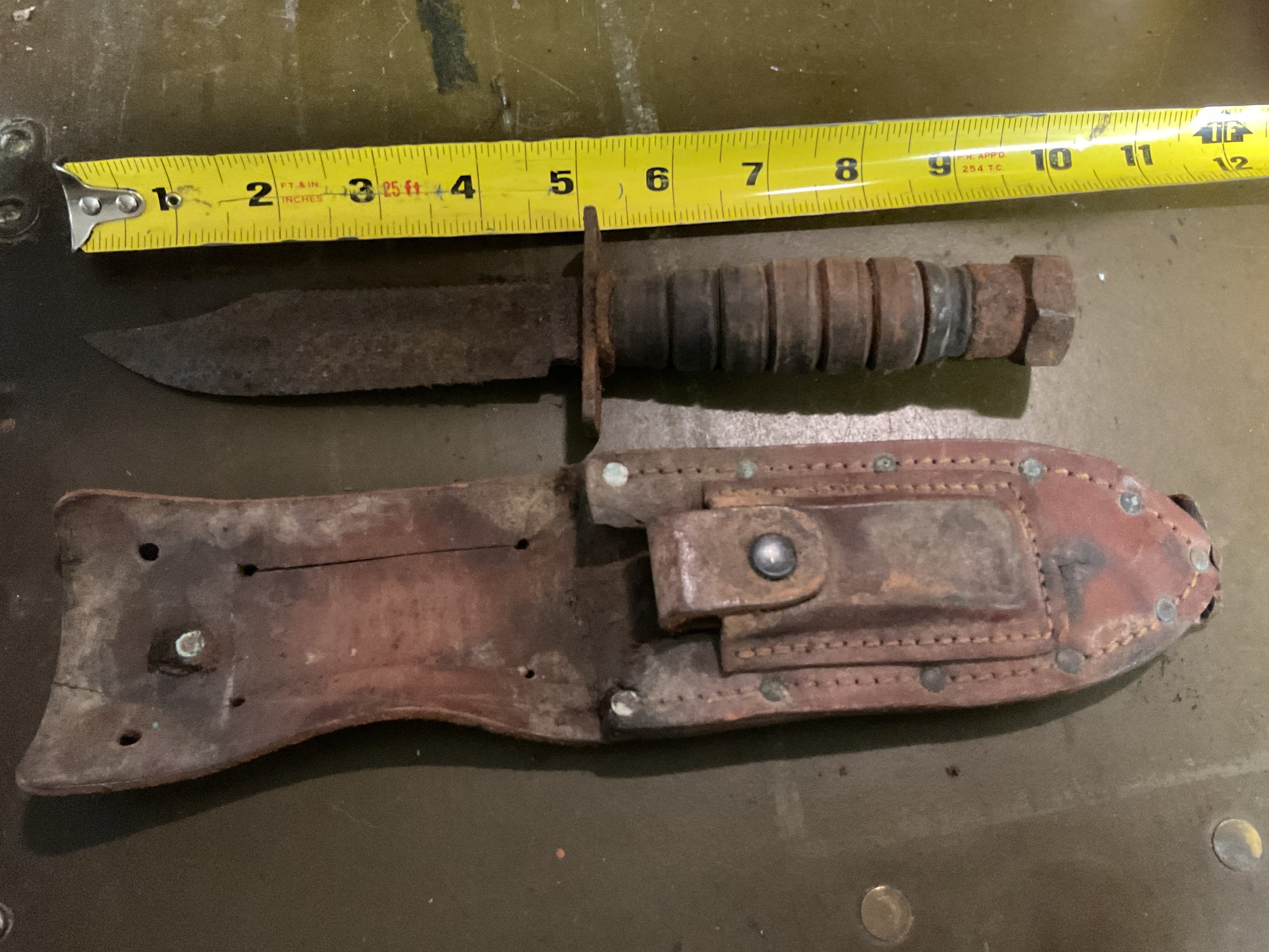 Many of these knives were further customized with artistic details—engraved initials, decorative etchings, or unique handle modifications—transforming functional military tools into personal keepsakes and expressions of creativity. This particular piece not only reflects the utilitarian history of wartime but also the personal stories and artistic spirit of the soldiers who owned them.